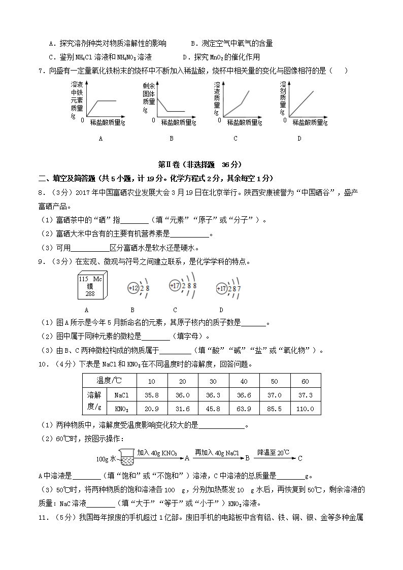 【文档名称】 2017年陕西省西安市中考化学真题及答案(Word版).doc