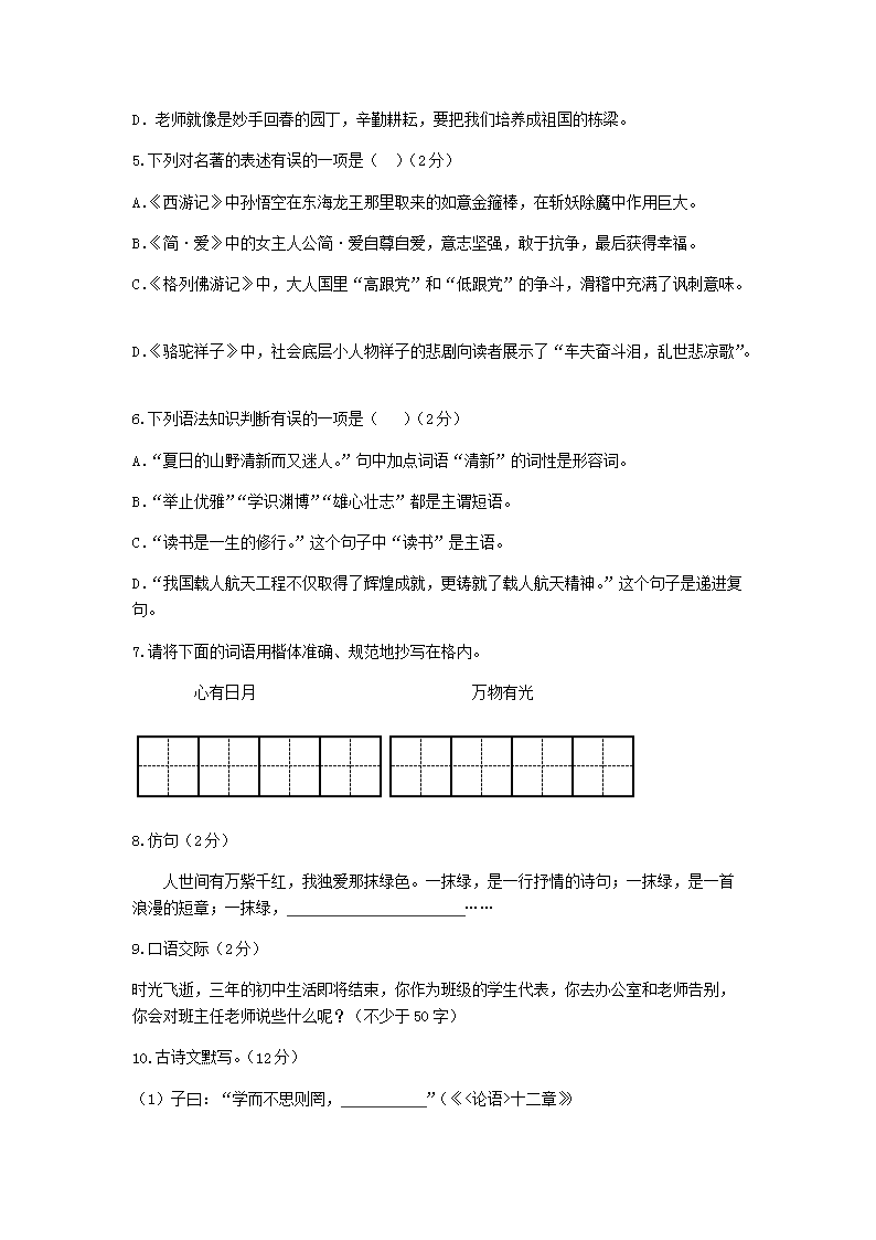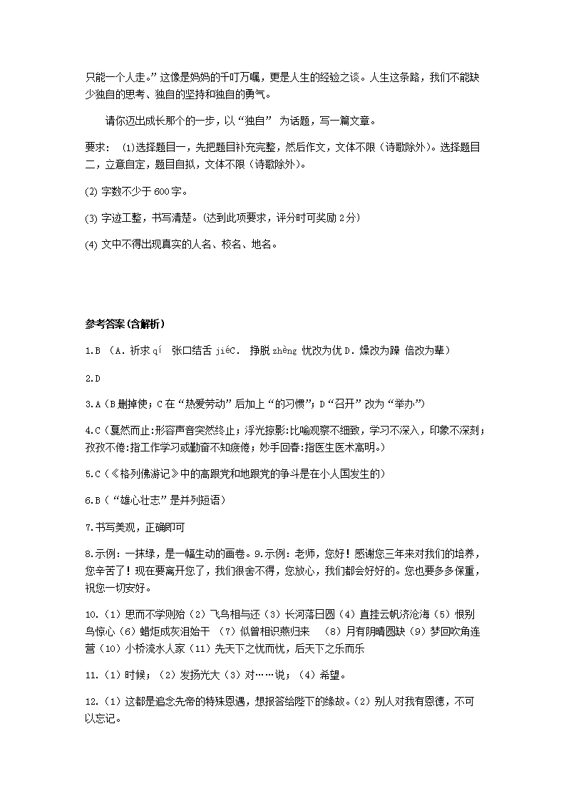 【文档预览】 无忧考网整理发布2020年辽宁鞍山中考语文真题及答案(Word版),前五页预览如下: