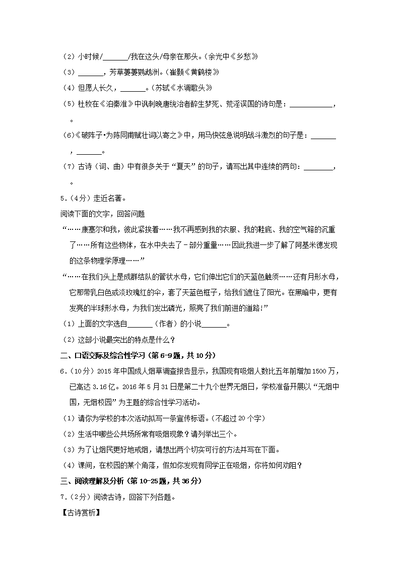 【文档预览】 无忧考网整理发布2016年黑龙江省鸡西市中考语文试题及答案(Word版),前五页预览如下: