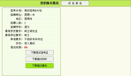 17、对面试结果,系统会在第一时间进行公布显示,请注意查看【面试成绩】一栏是否进行显示。