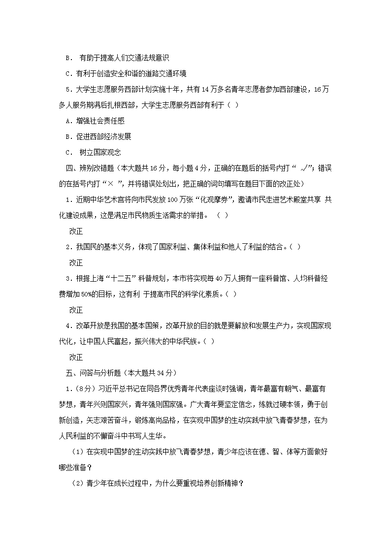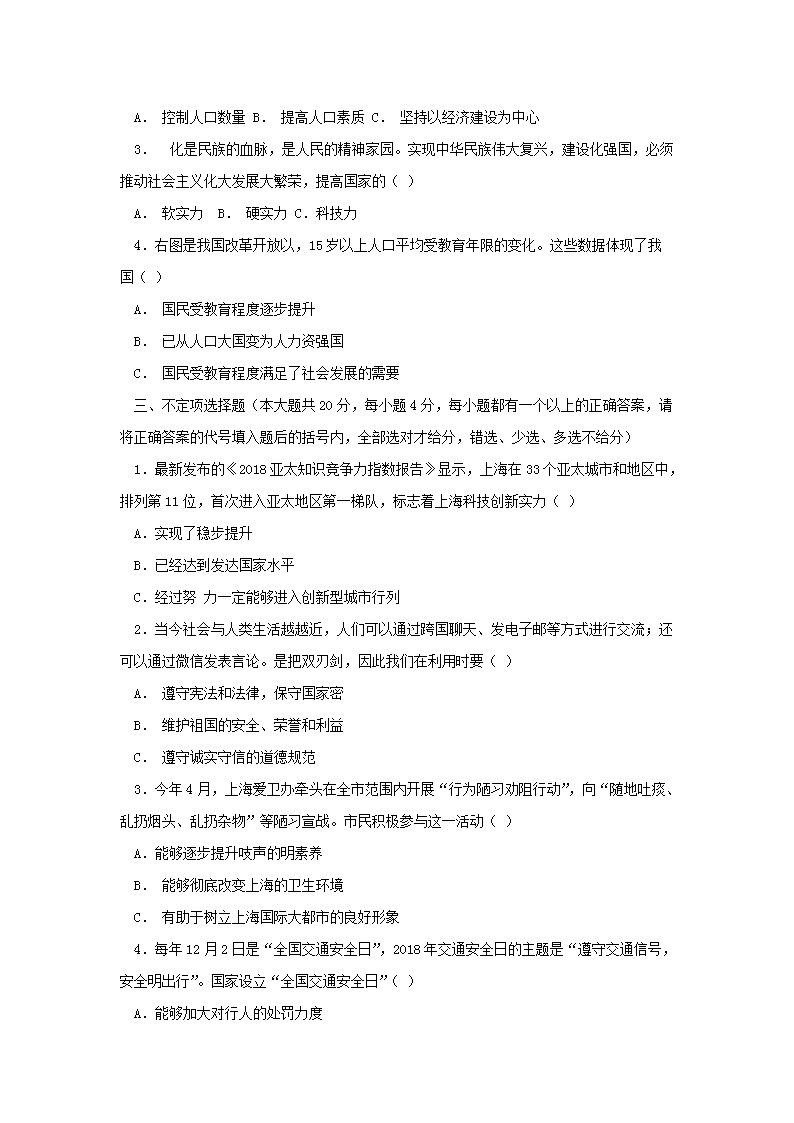 【文档名称】 2018年上海虹口中考政治真题及答案(Word版).doc