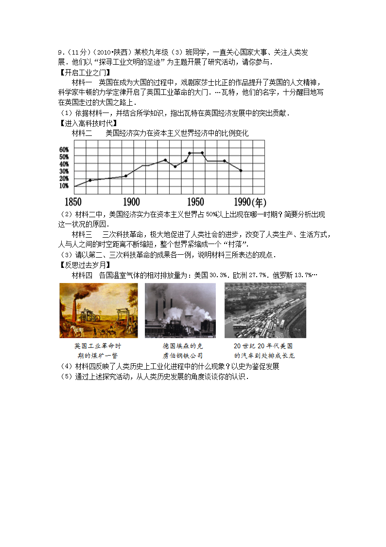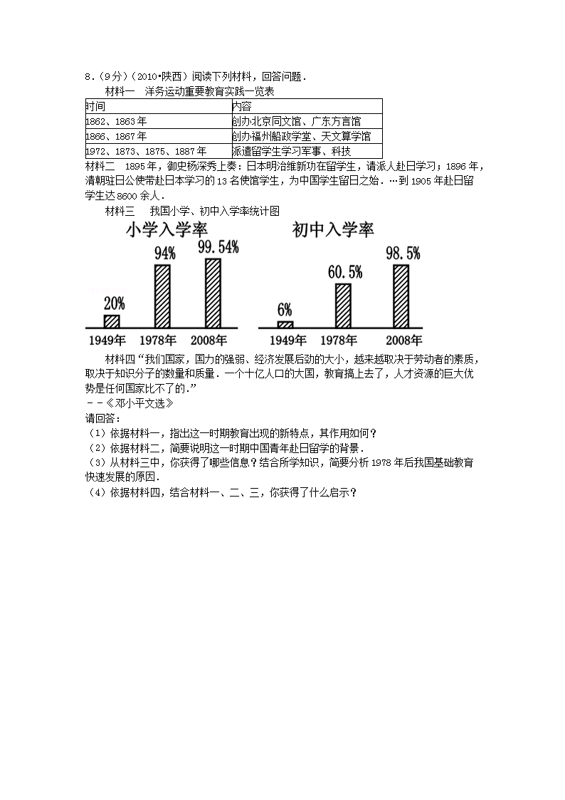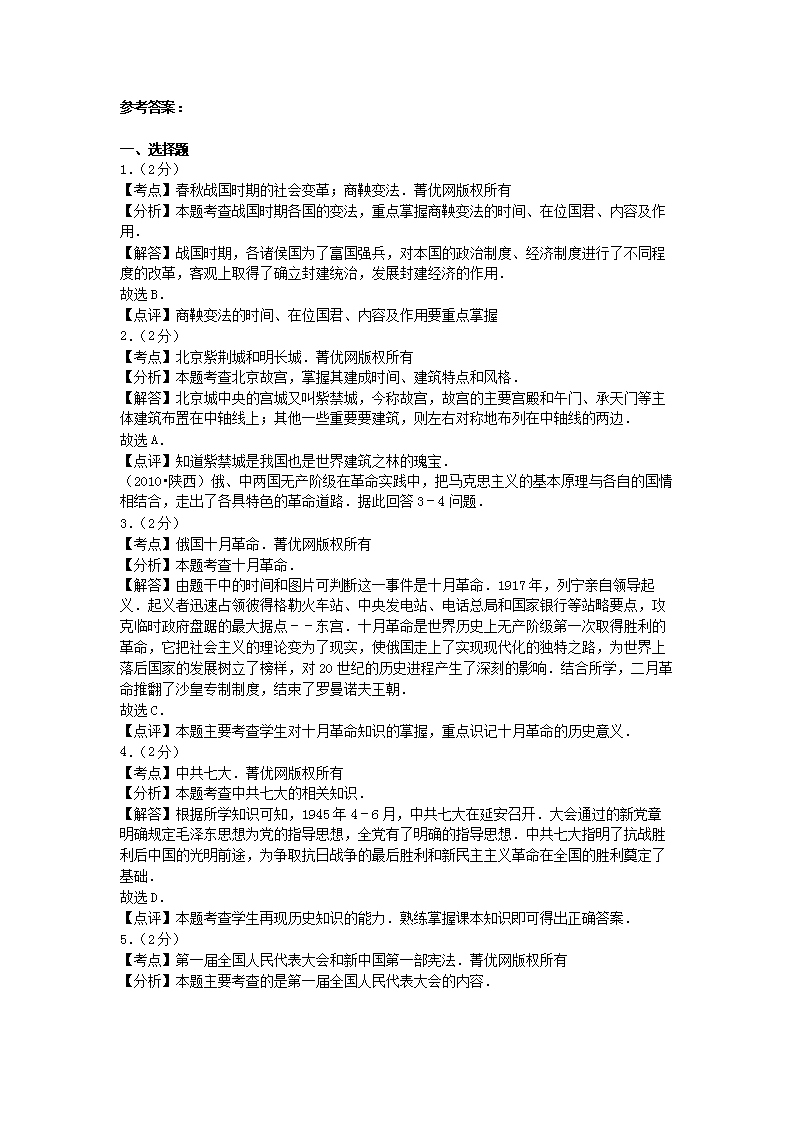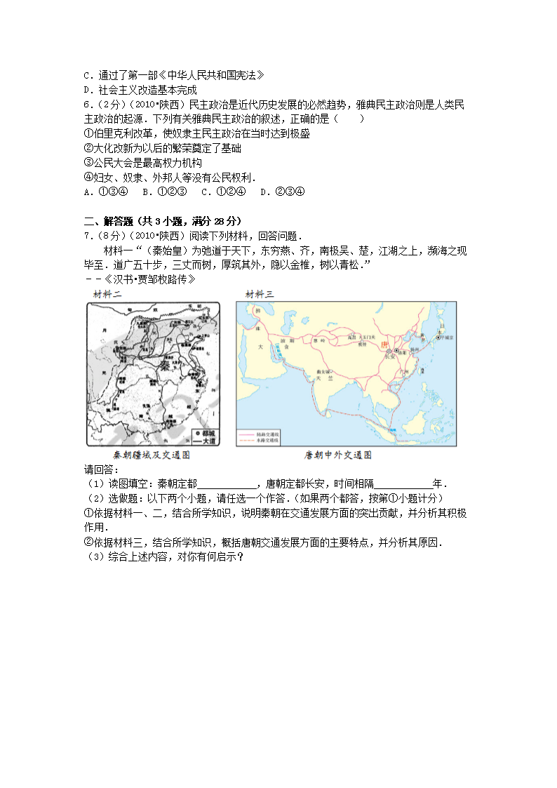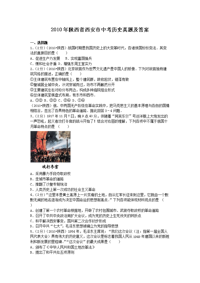 【文档名称】 2010年陕西省西安市中考历史真题及答案(Word版).doc