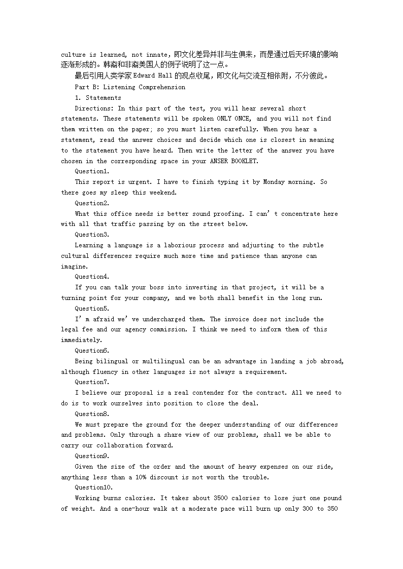 【文档名称】 2011年3月翻译资格中级英语口译笔试真题(Word版).doc