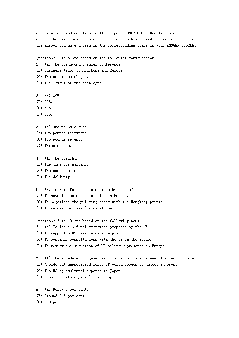 【文档名称】 2001年9月翻译资格英语高级口译笔试真题(Word版).doc