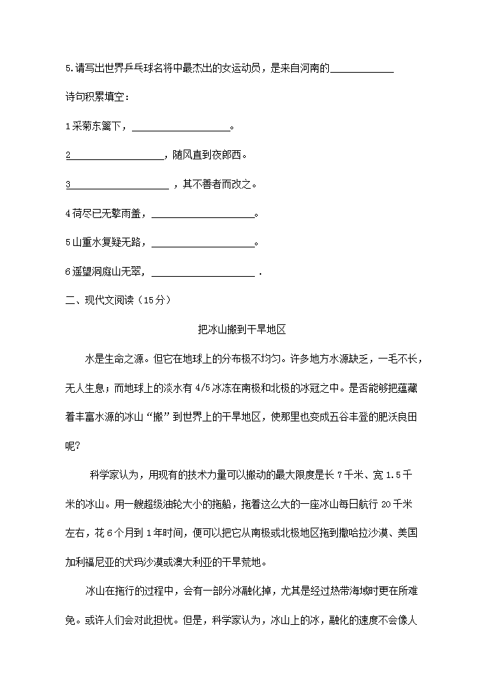 【文档名称】 2017年河南小升初语文真题及答案(Word版).doc