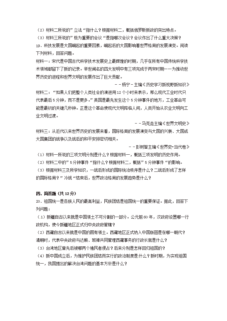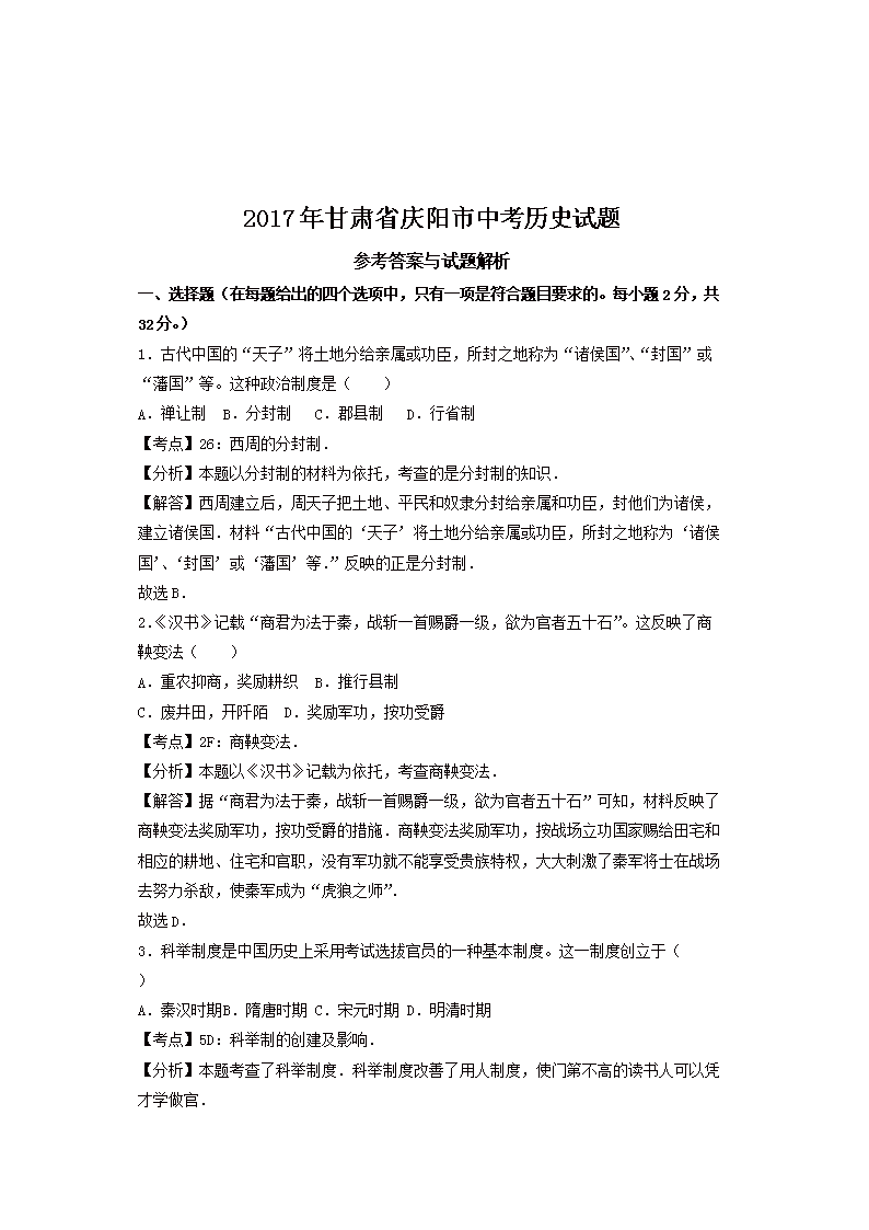 【文档名称】 2017年甘肃省庆阳市中考历史试题及答案(Word版).doc