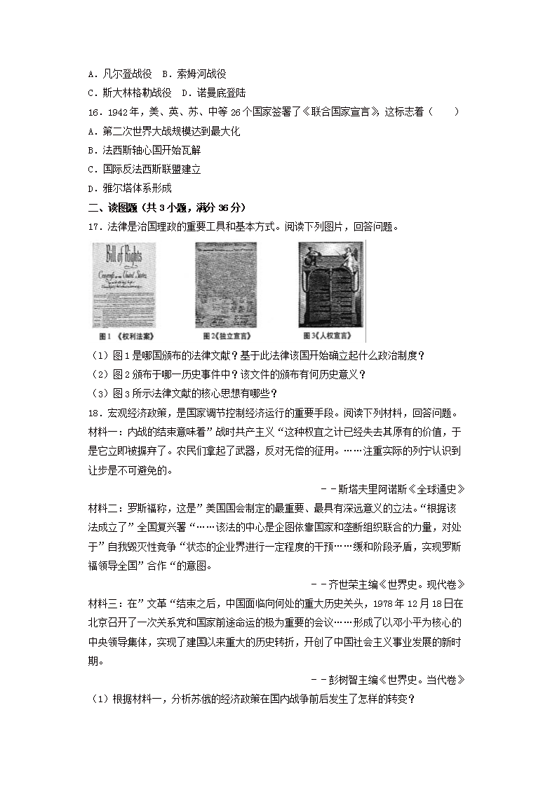 【文档预览】 无忧考网整理发布2017年甘肃省庆阳市中考历史试题及答案(Word版),前五页预览如下: