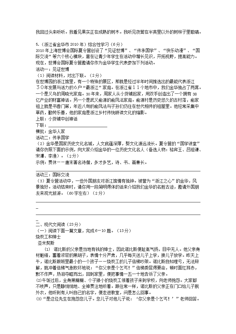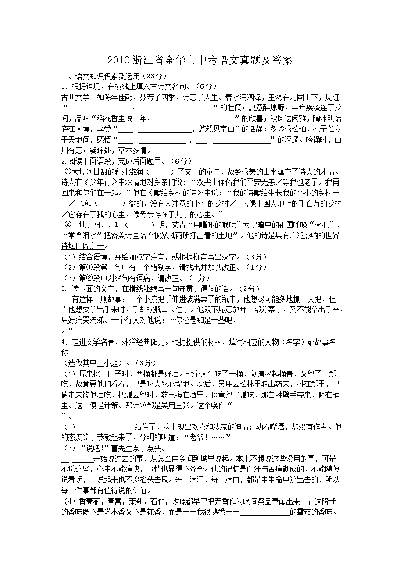 【文档名称】 2010浙江省金华市中考语文真题及答案(Word版).doc