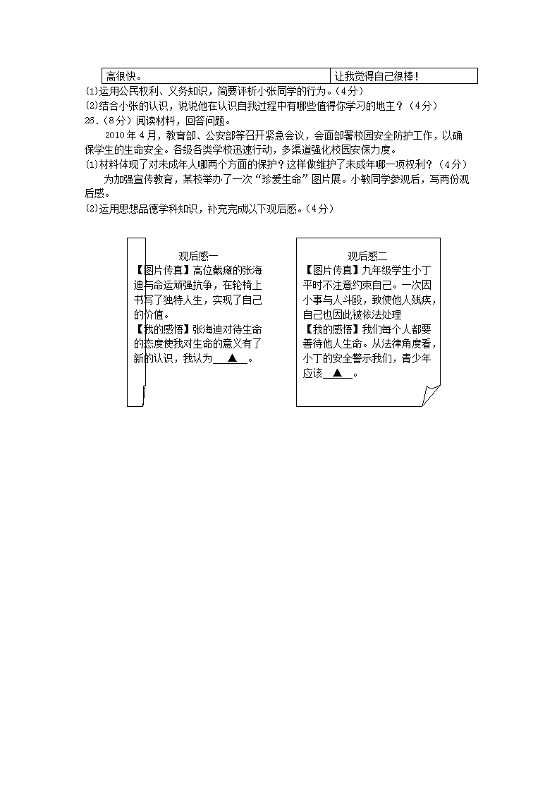 【文档名称】 2010浙江省丽水市中考政治真题及答案(Word版).doc
