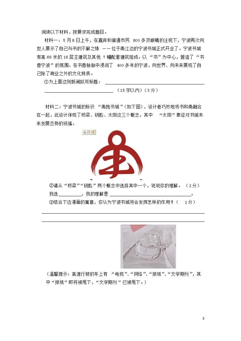 【文档预览】 无忧考网整理发布2010浙江省宁波市中考语文真题及答案(Word版),前五页预览如下: