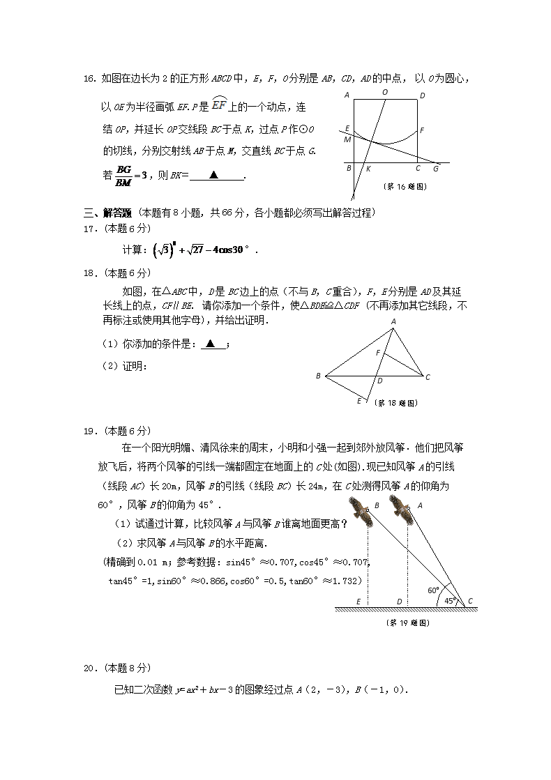 【文档预览】 无忧考网整理发布2020浙江省金华市中考数学真题及答案(Word版),前五页预览如下: