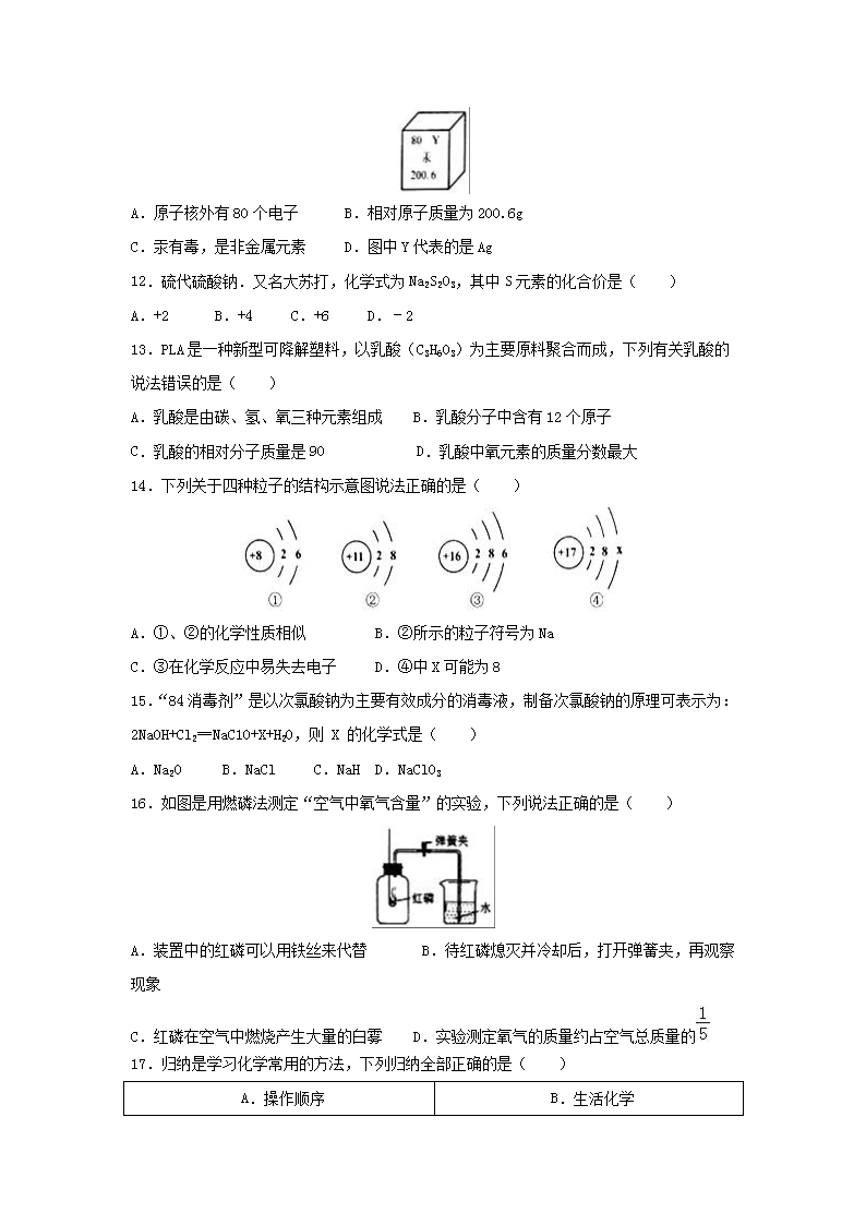 【文档名称】 2017年甘肃省兰州市中考化学试题及答案(Word版).doc