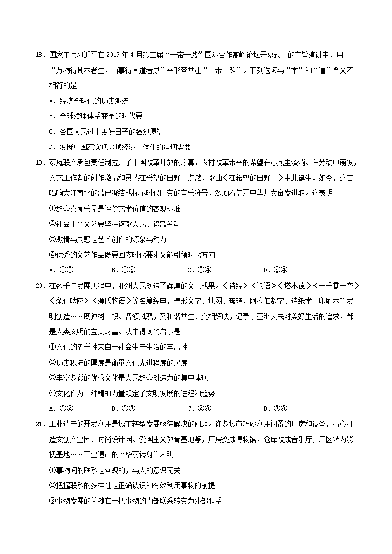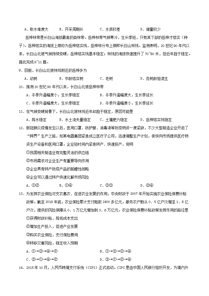 【文档名称】 2020年福建高考文科综合试题及答案(Word版).doc