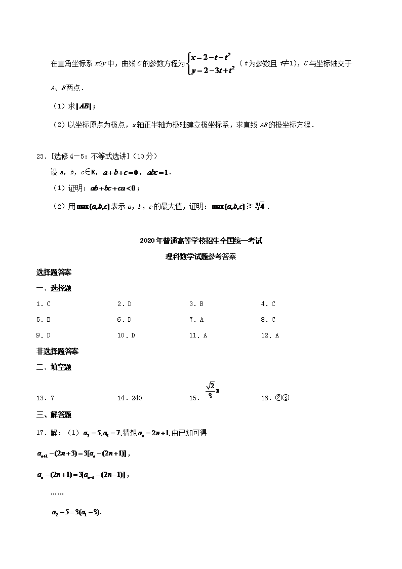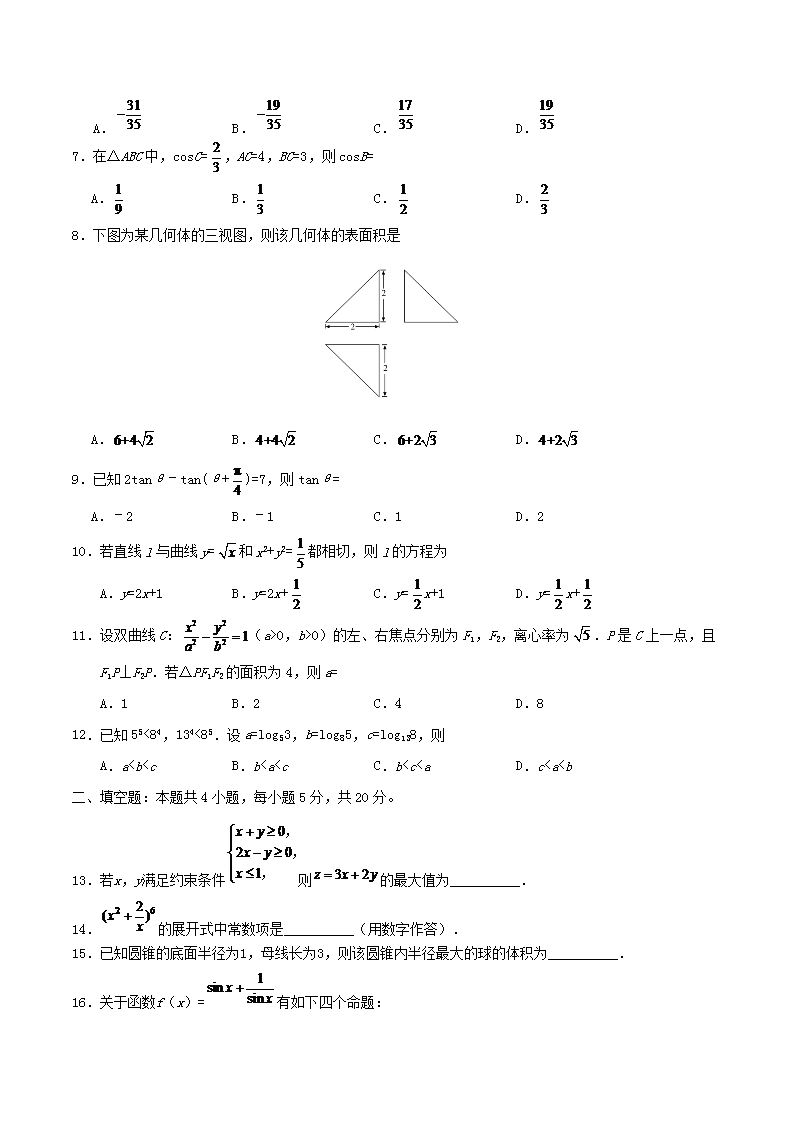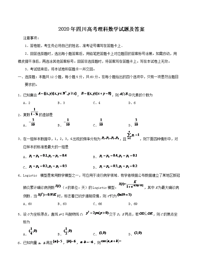【文档名称】 2020年四川高考理科数学试题及答案(Word版).doc