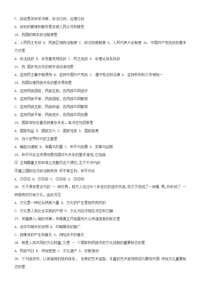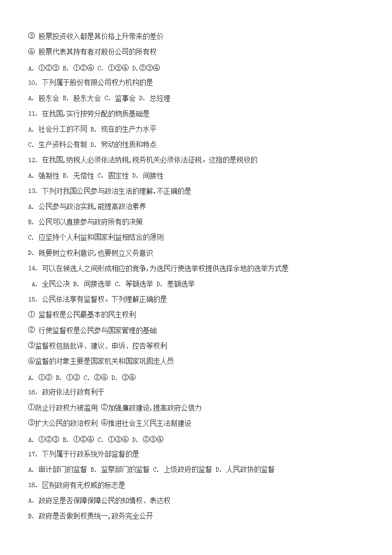 【文档名称】 2017年广东普通高中会考政治真题及答案(Word版).doc