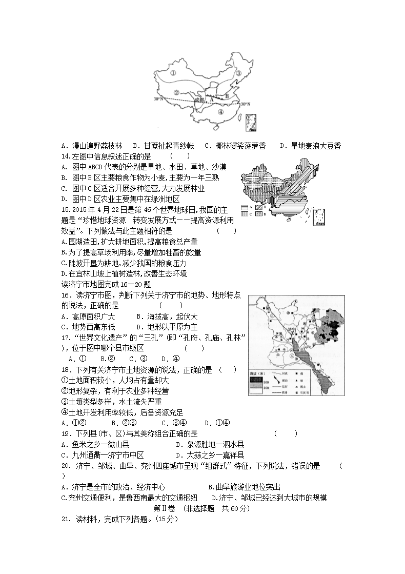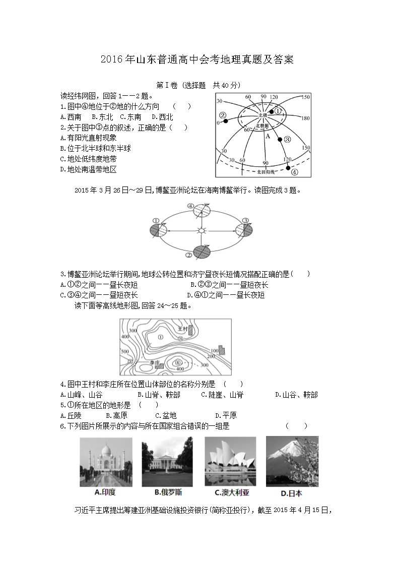 【文档预览】 无忧考网整理发布2016年山东普通高中会考地理真题及答案(Word版),前五页预览如下: