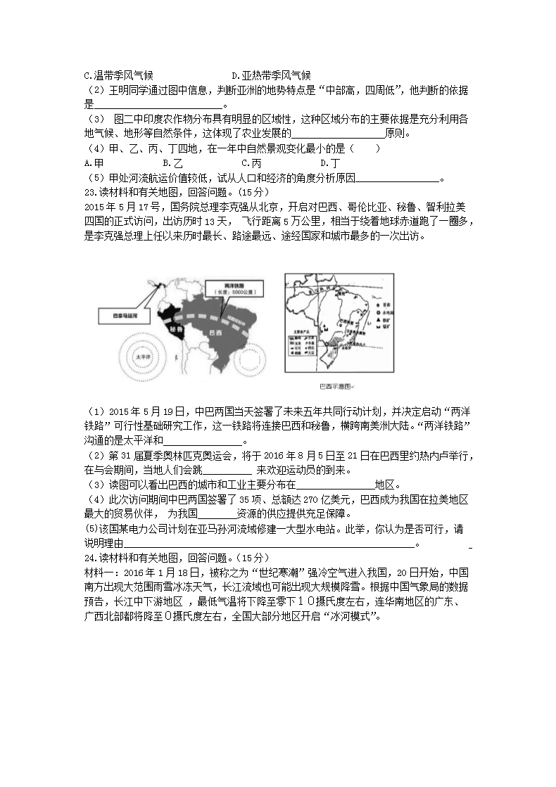 【文档名称】 2016年山东普通高中会考地理真题及答案(Word版).doc