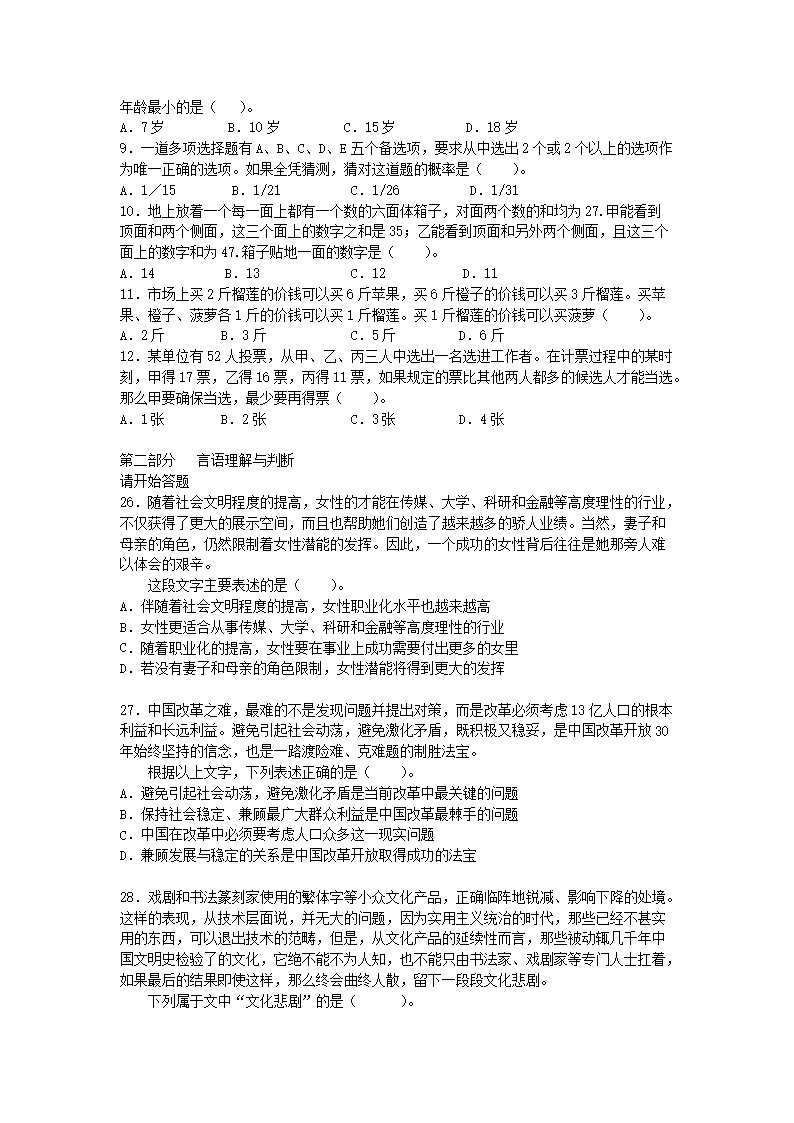 【文档名称】 2009年广东省事业单位考试行政能力测验真题及答案(Word版).doc