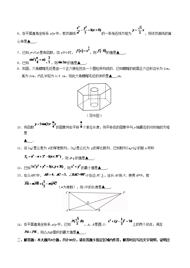 【文档名称】 2020年江苏高考数学试题及答案(Word版).doc