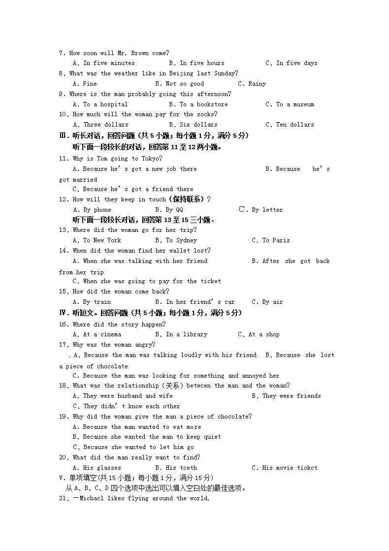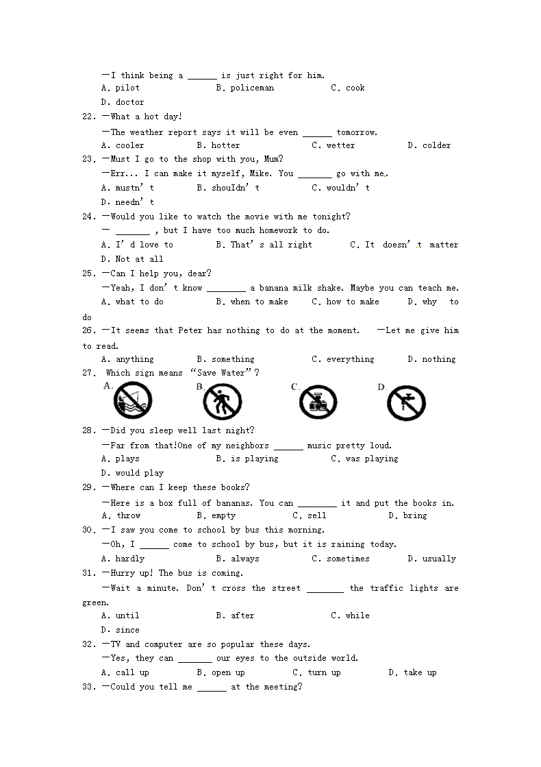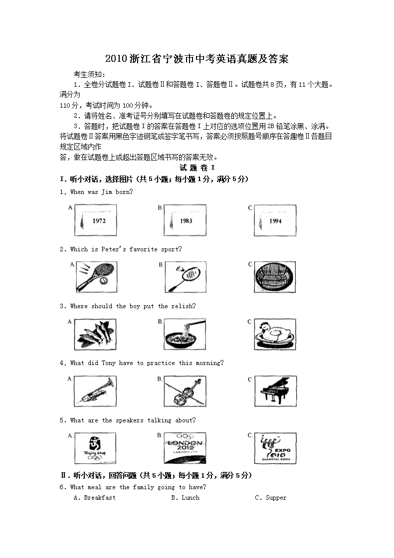 【文档名称】 2010浙江省宁波市中考英语真题及答案(Word版).doc