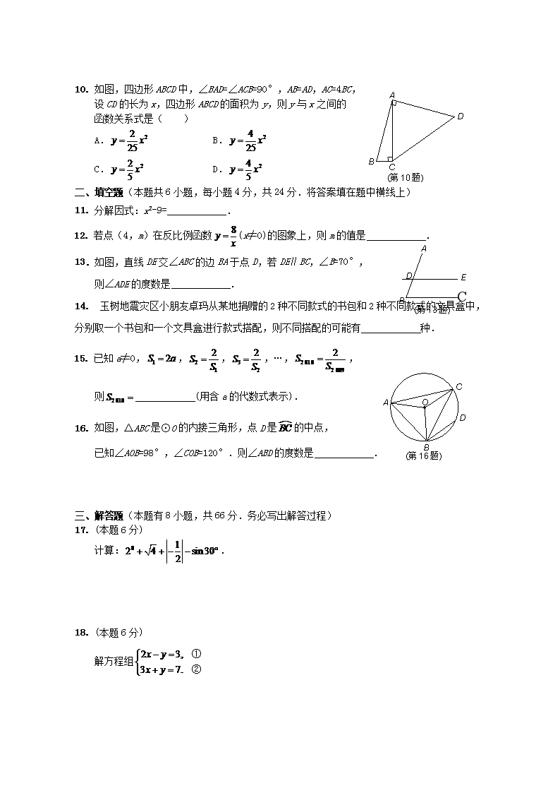 【文档名称】 2010浙江省衢州市中考数学真题及答案(Word版).doc