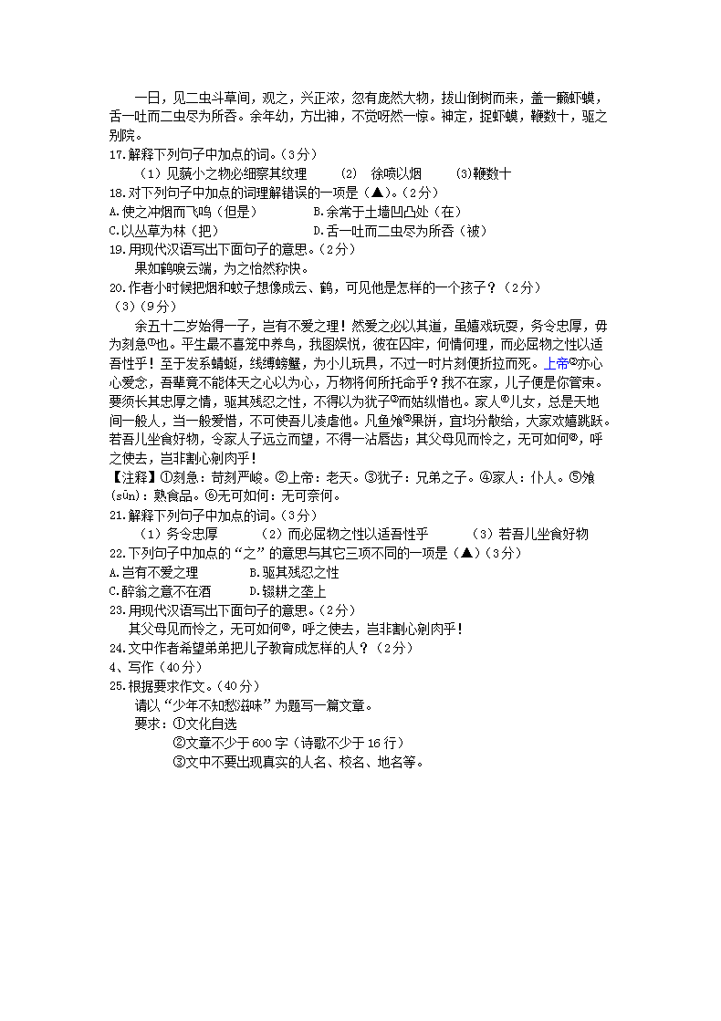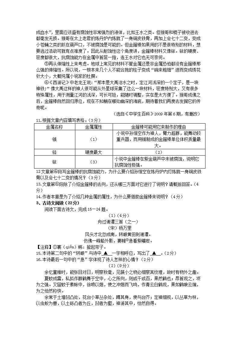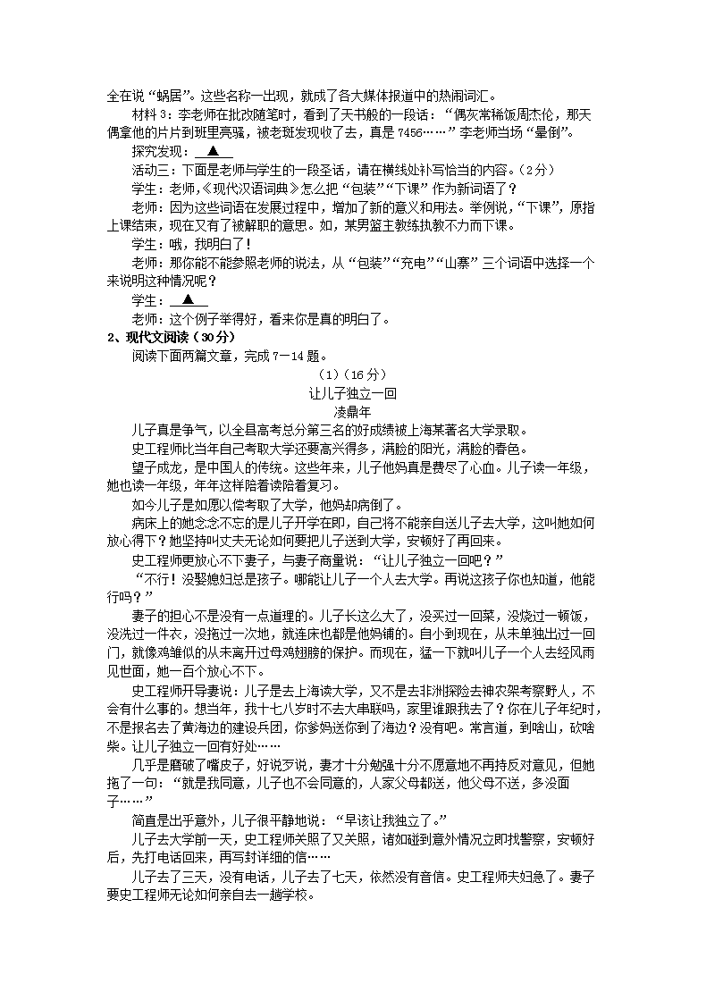 【文档名称】 2010浙江省衢州市中考语文真题及答案(Word版).doc