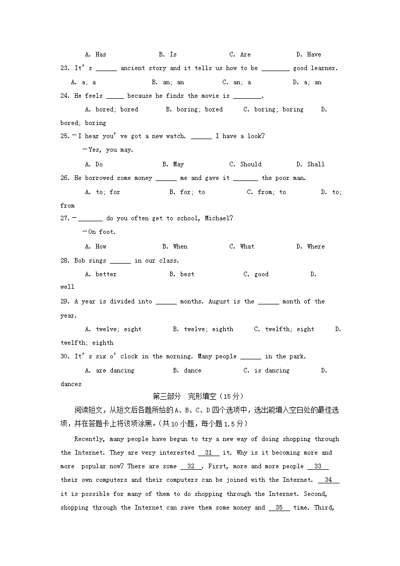 【文档预览】 无忧考网整理发布2016年贵州省毕节市中考英语试题及答案(Word版),前五页预览如下: