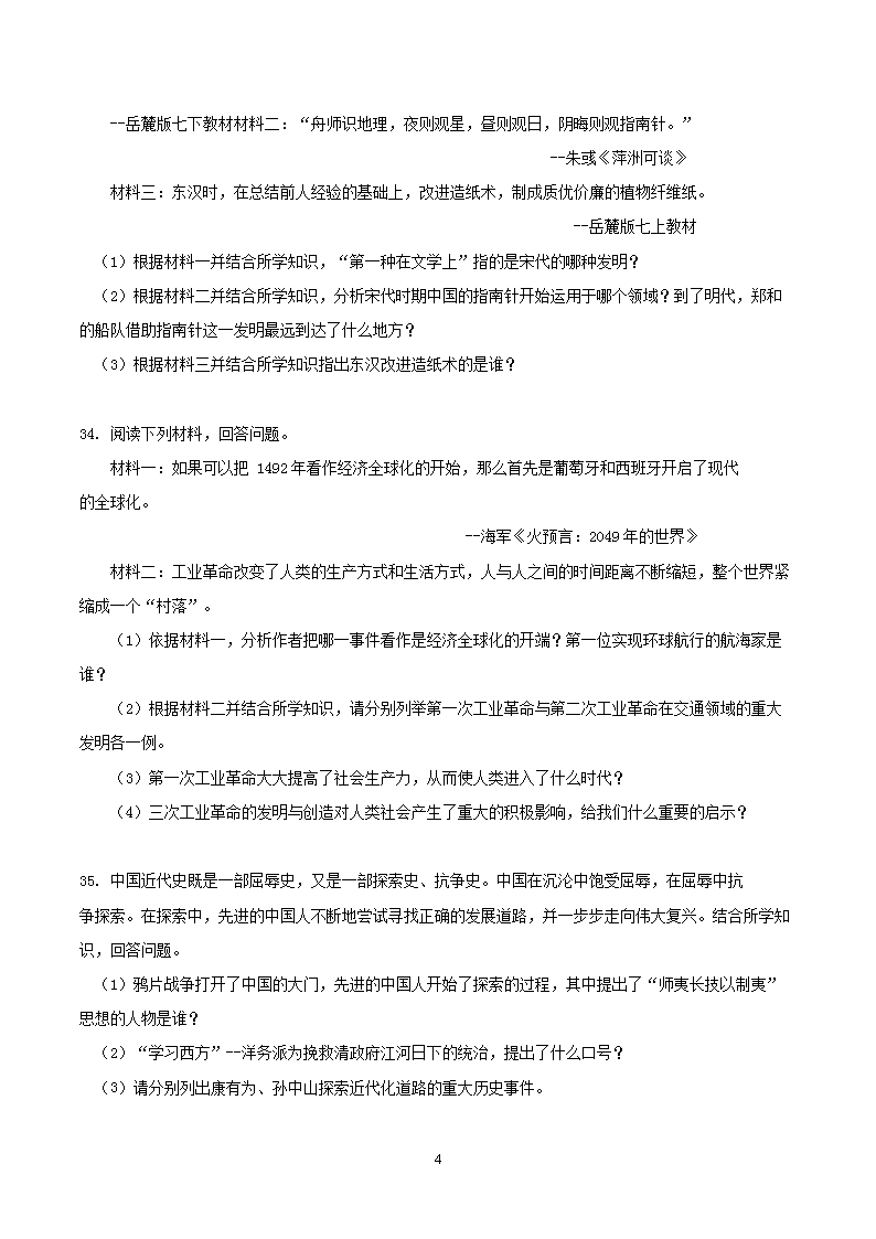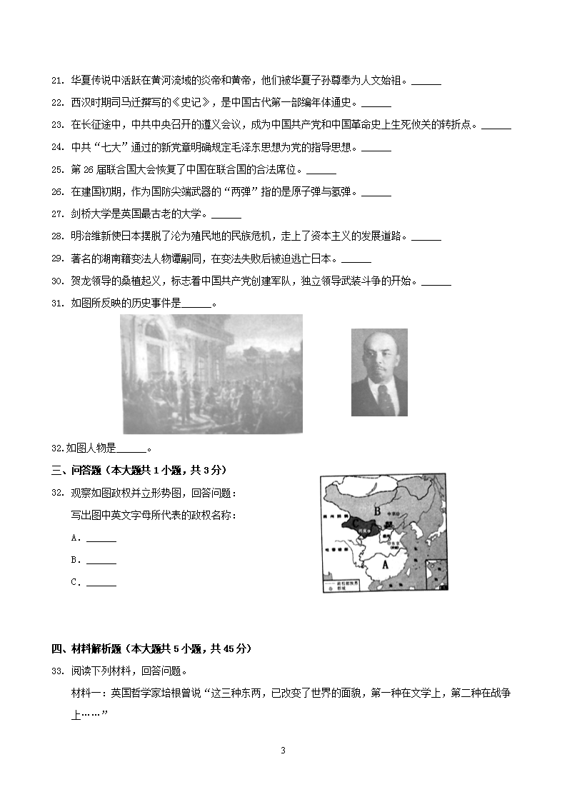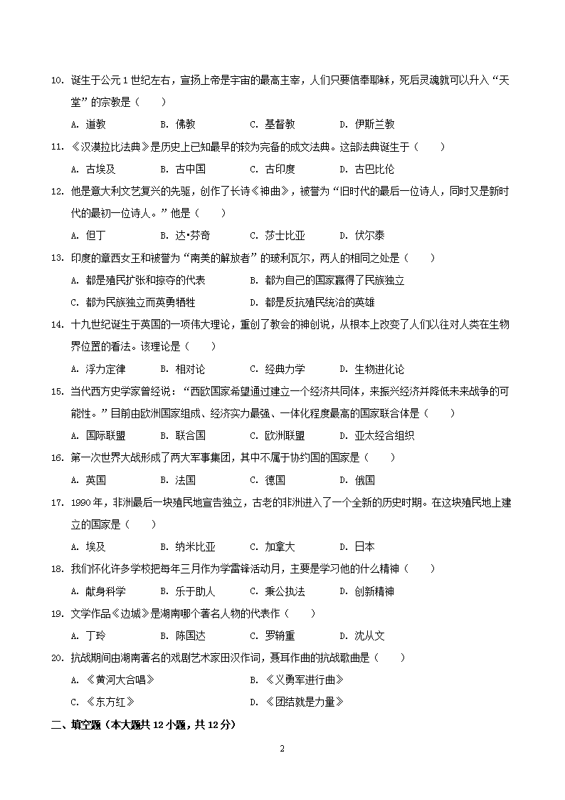 【文档名称】 2019年湖南省怀化市中考历史真题及答案(Word版).doc
