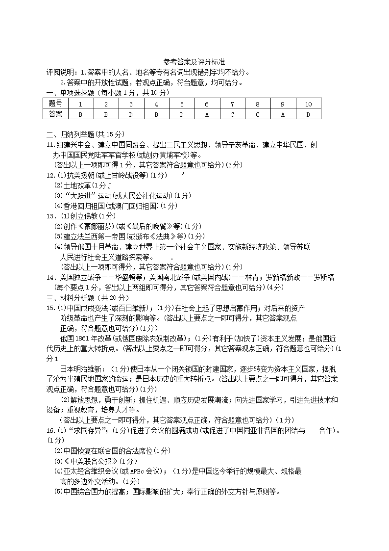 【文档名称】 2011吉林中考历史真题及答案(Word版).doc