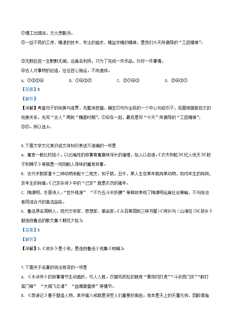 【文档名称】 2019年湖南省怀化市中考语文真题及答案(Word版).doc