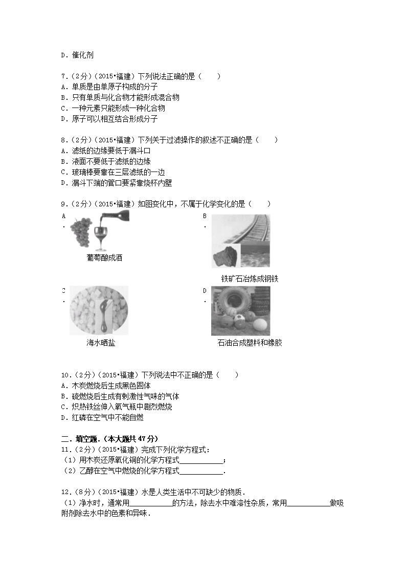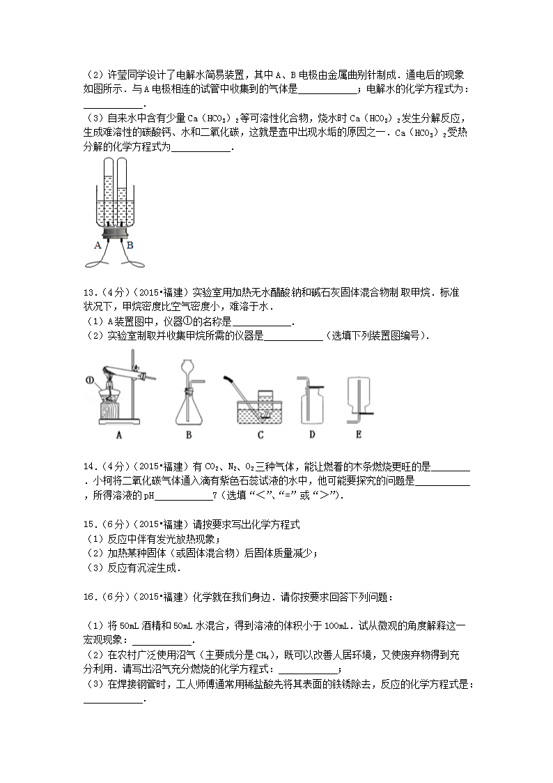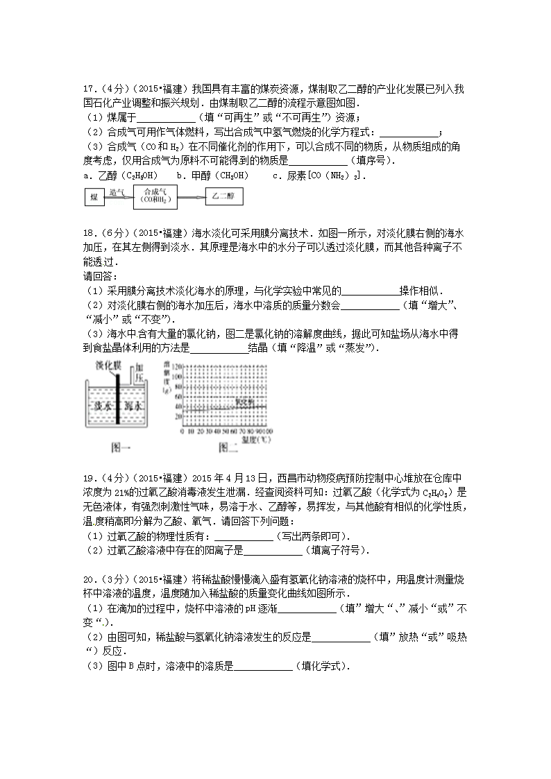【文档名称】 2015年福建省三明市中考化学真题及答案(Word版).doc