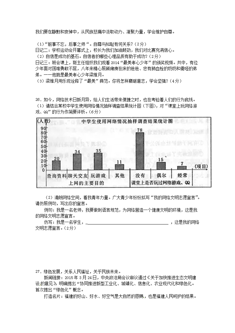 【文档名称】 2015年福建省漳州市中考政治真题及答案(Word版).doc
