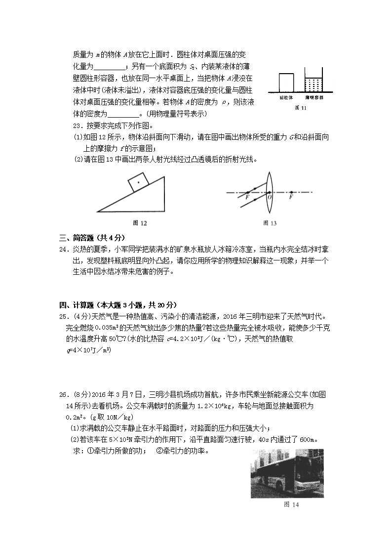 【文档名称】 2016年福建省三明市中考物理真题及答案(Word版).doc