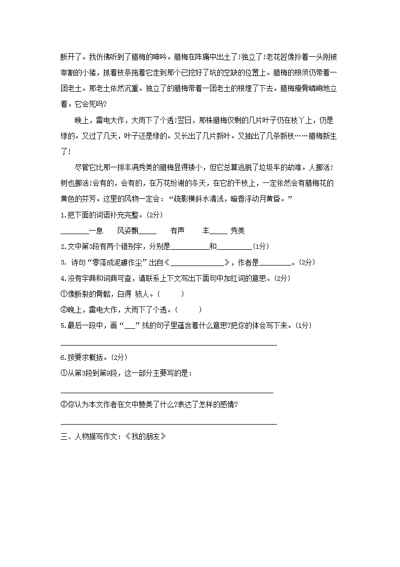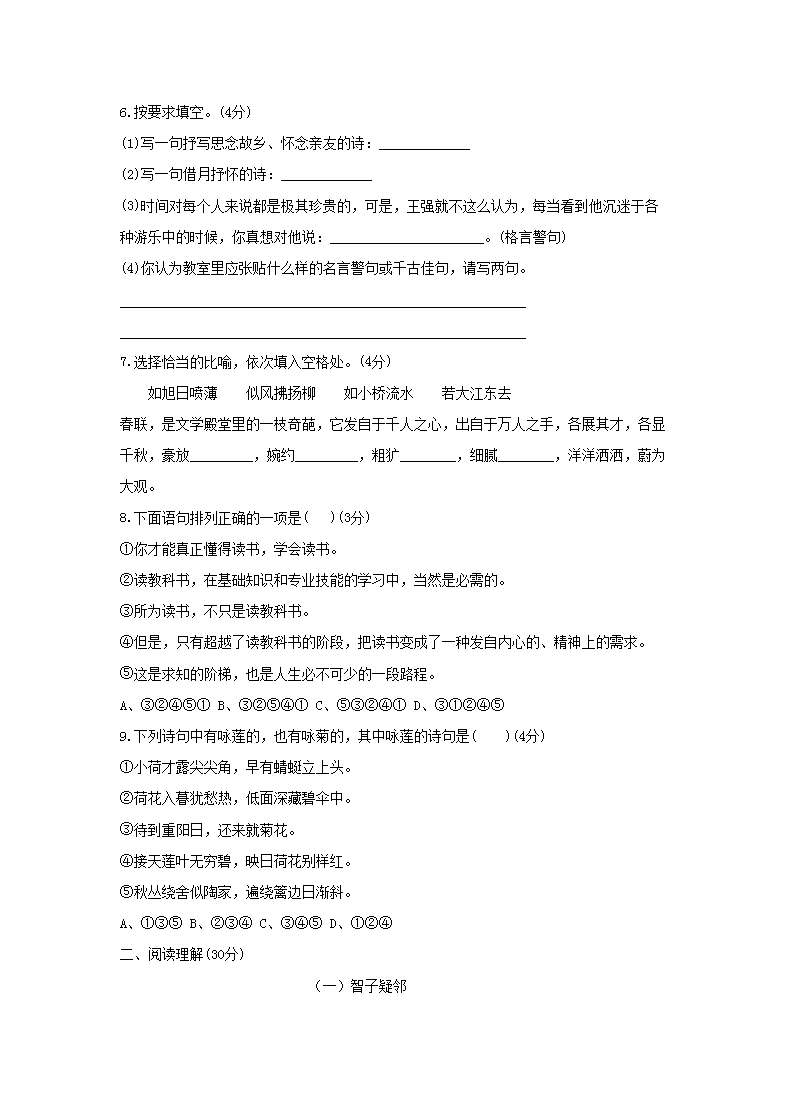 【文档预览】 无忧考网整理发布2017年陕西小升初语文真题及答案(Word版),前五页预览如下:
