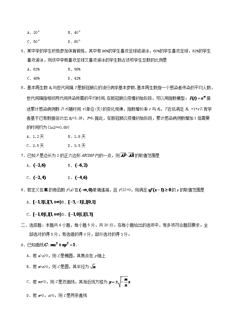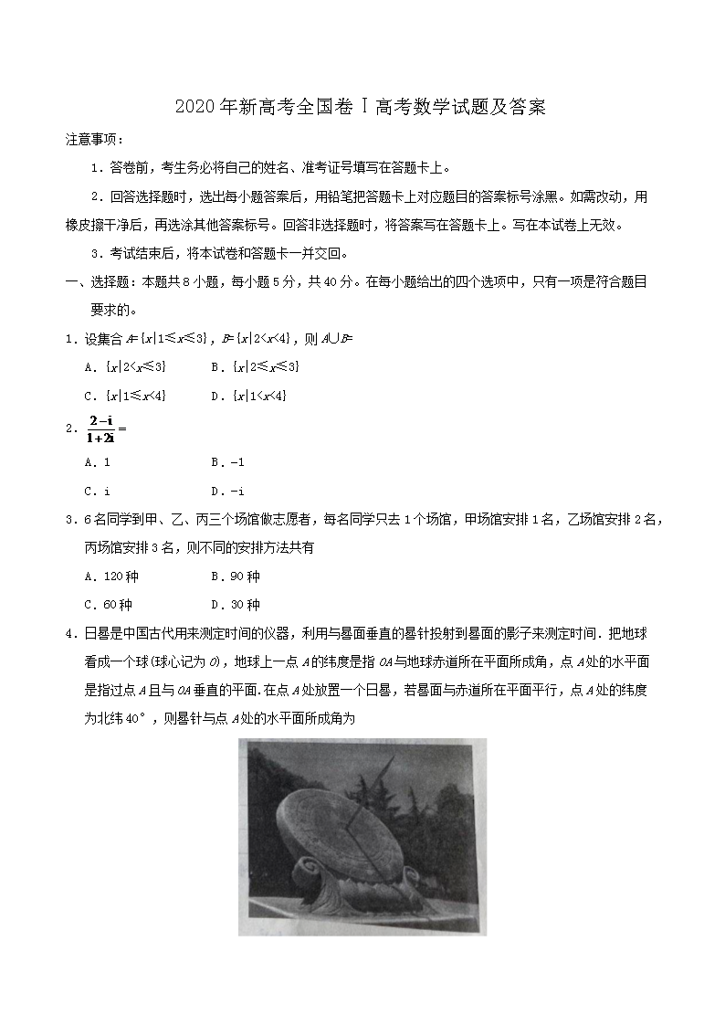 【文档名称】 2020年新高考全国卷Ⅰ高考数学试题及答案(Word版).doc