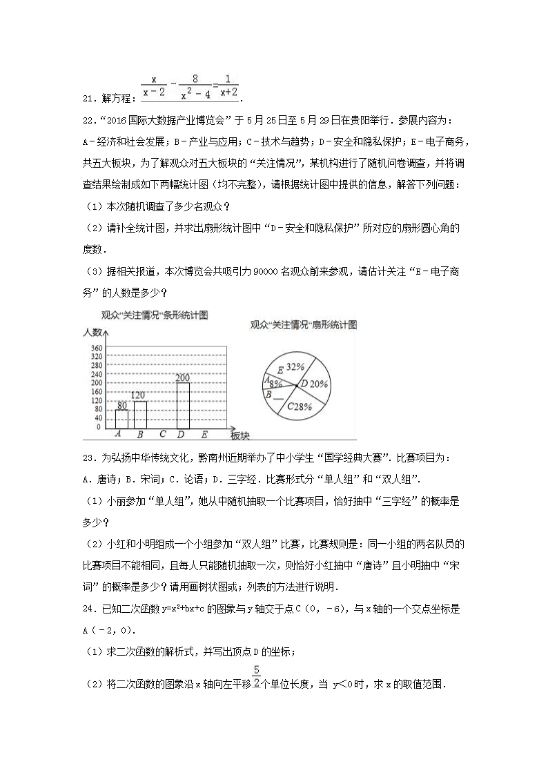 【文档预览】 无忧考网整理发布2016年贵州省黔南州中考数学试题及答案(Word版),前五页预览如下: