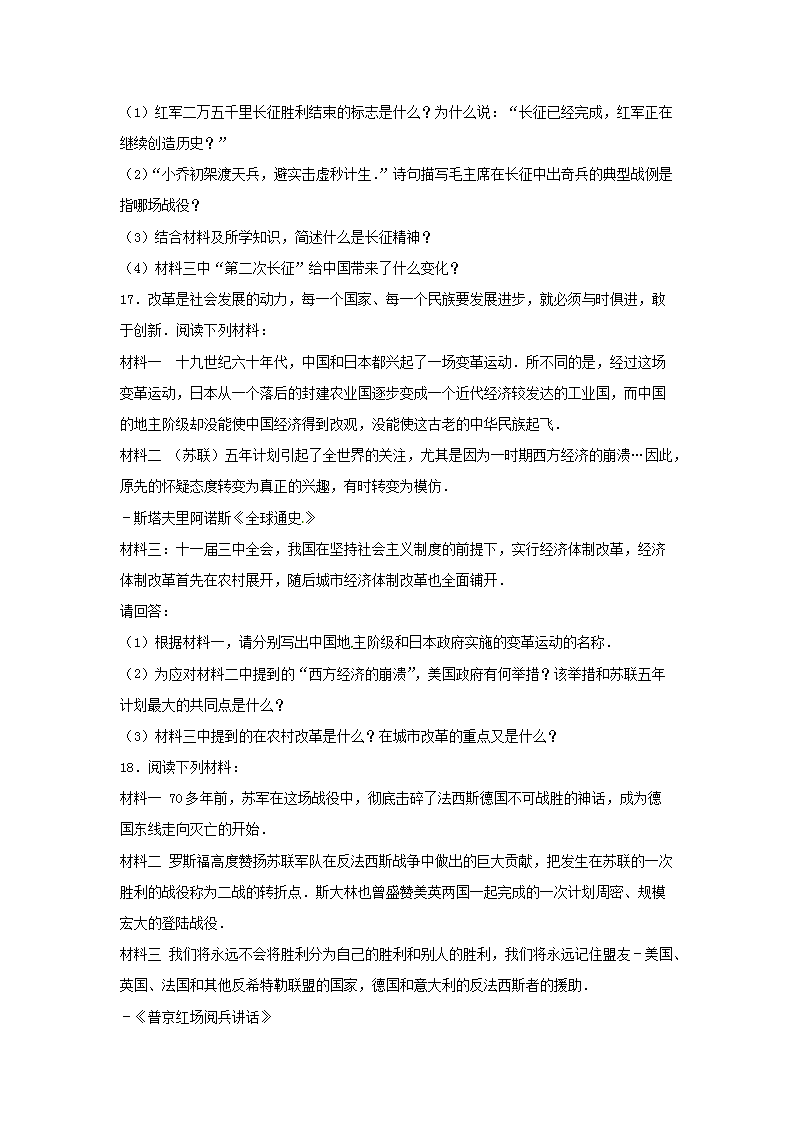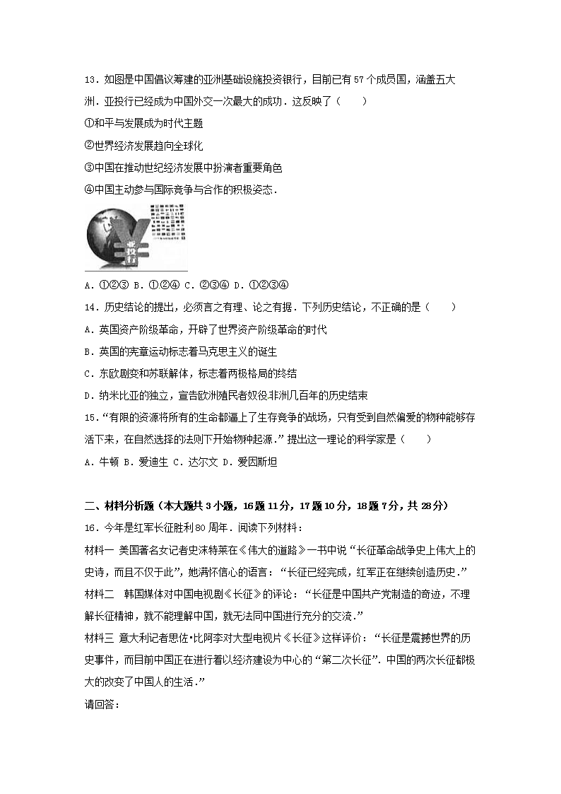 【文档名称】 2016年贵州省黔南州中考历史试题及答案(Word版).doc