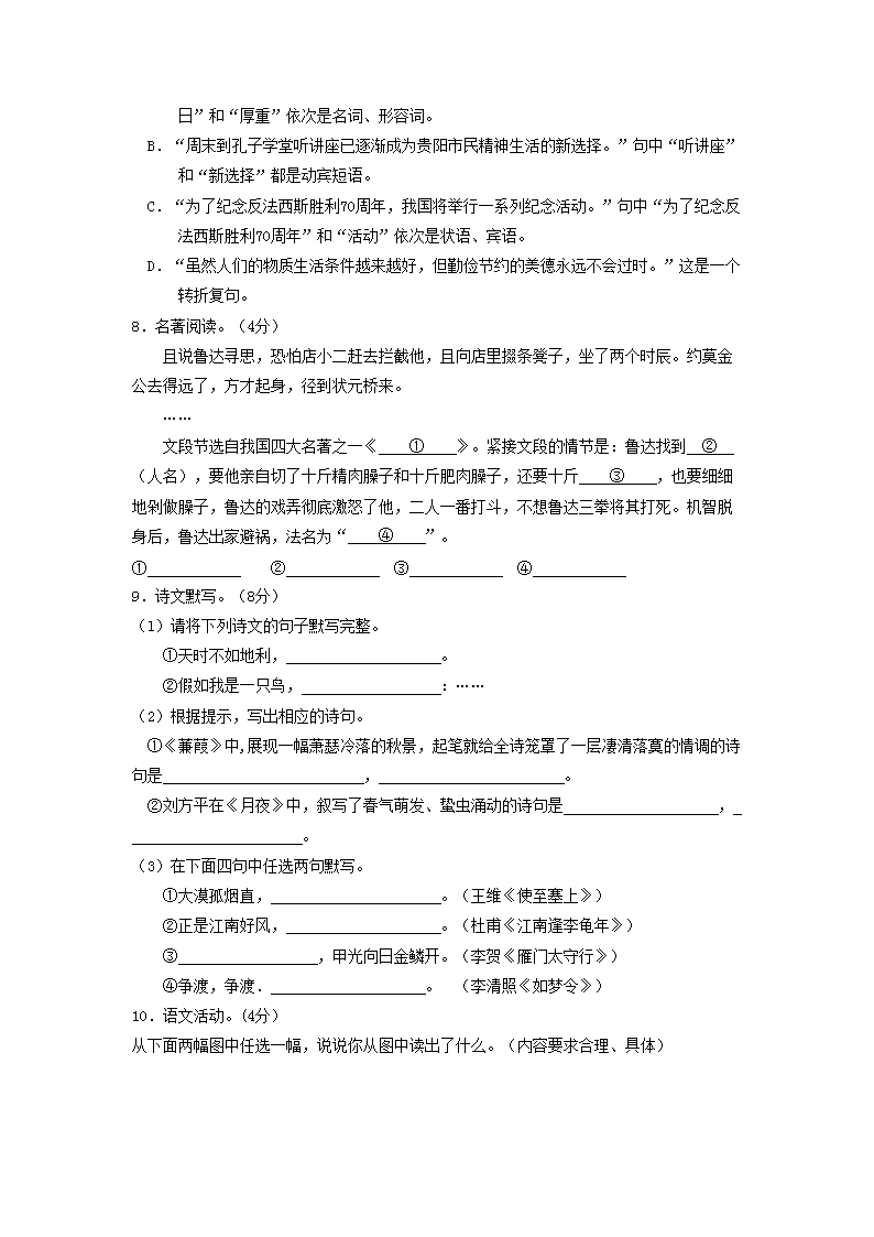 【文档名称】 2015年贵州省贵阳市中考语文试题及答案(Word版).doc