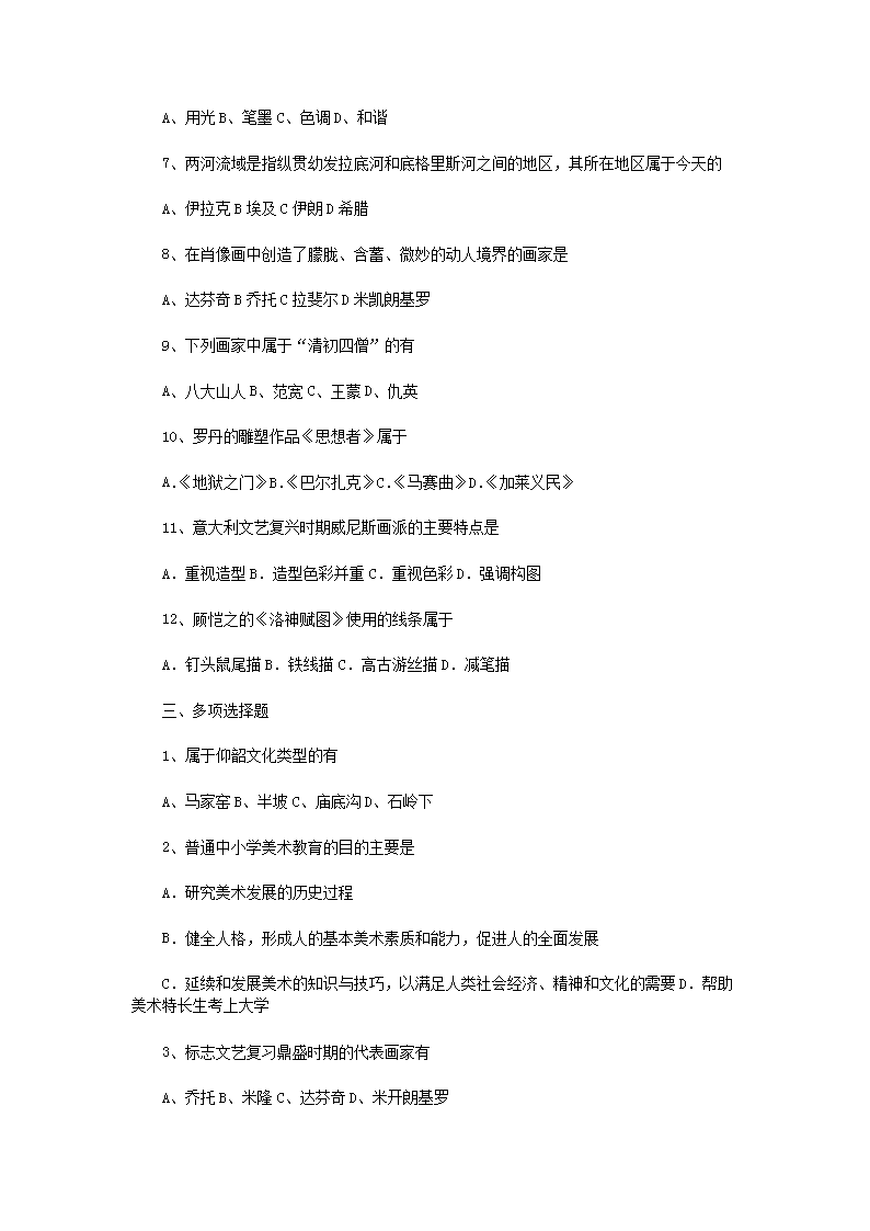 【文档名称】 2012福建教师招聘考试高中美术真题(Word版).doc