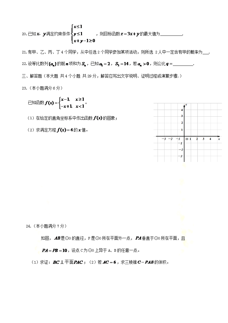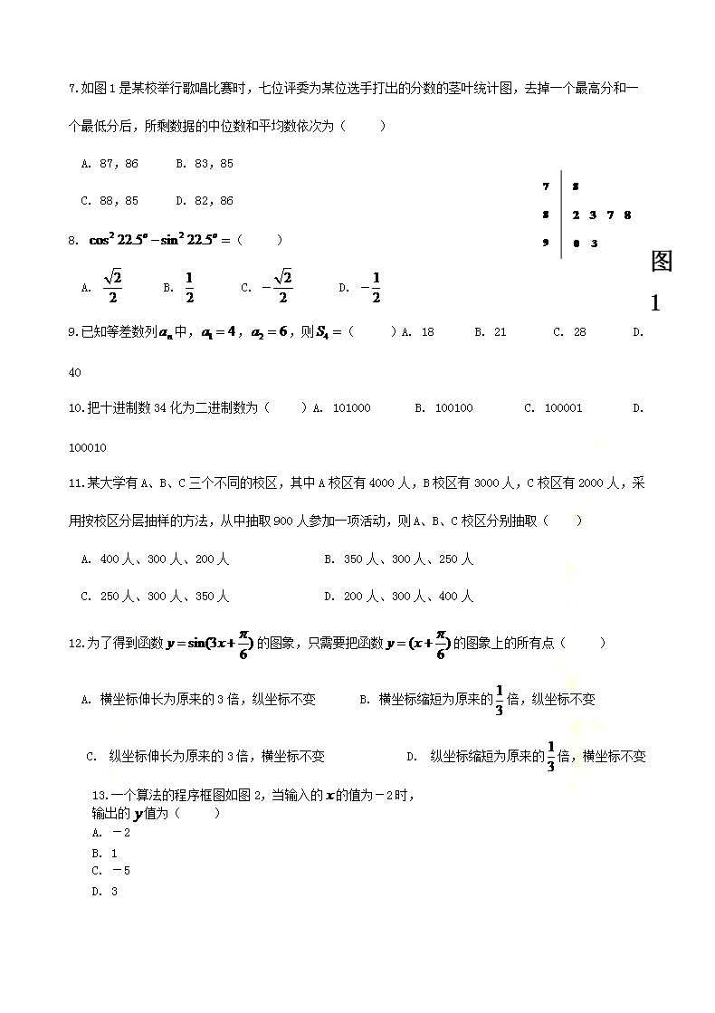 【文档名称】 2015年云南普通高中会考数学真题(Word版).doc