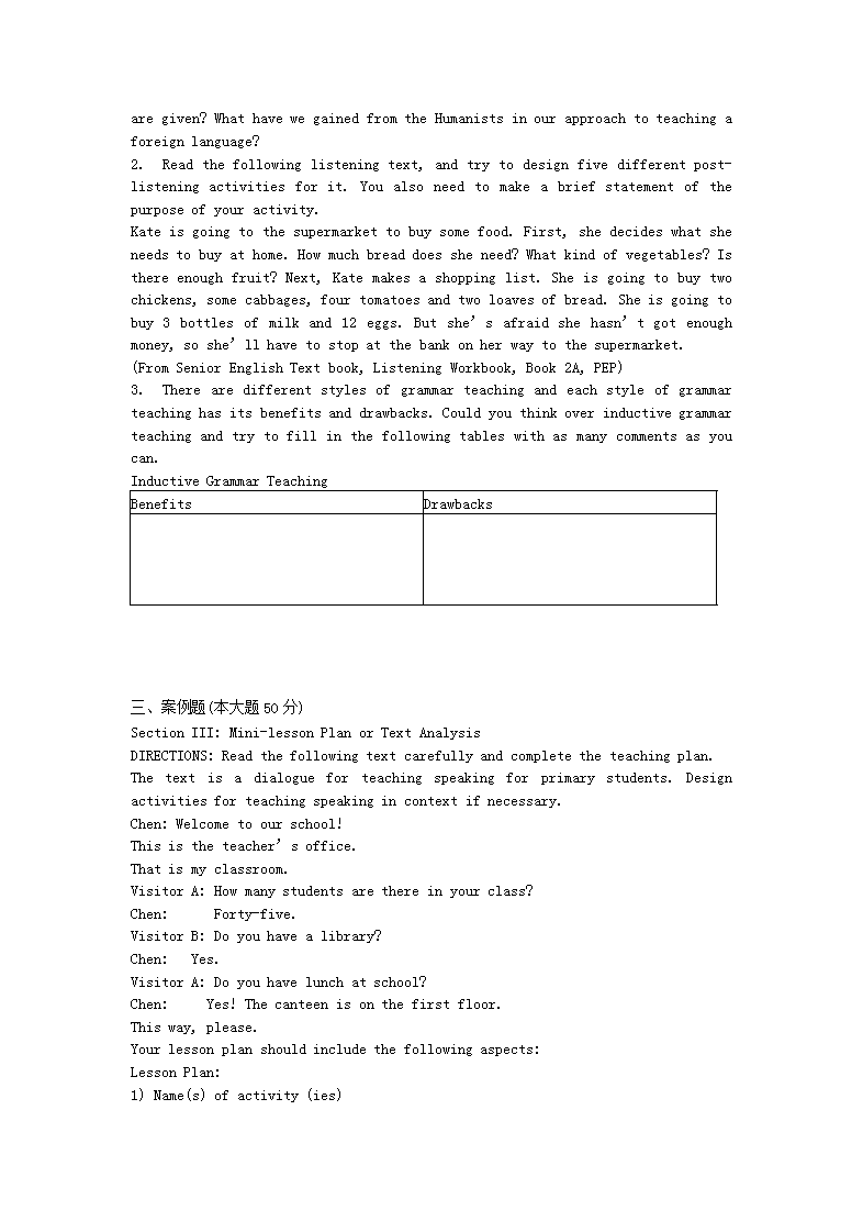 【文档预览】 无忧考网整理发布2007年10月浙江省高等教育自学考试英语教学论真题(Word版),前五页预览如下: