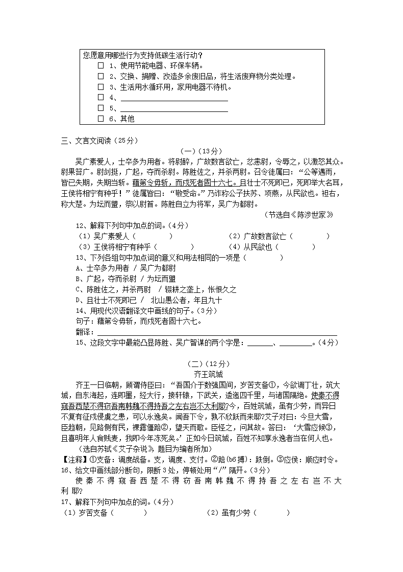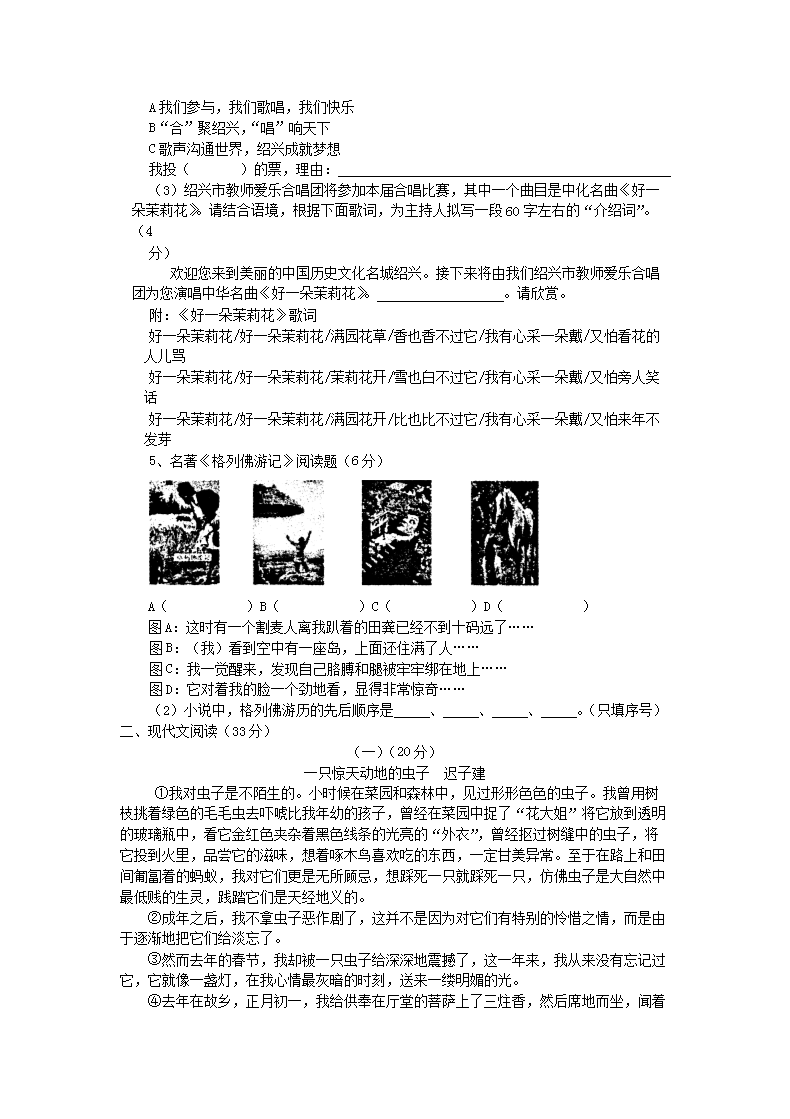 【文档名称】 2010浙江省绍兴市中考语文真题及答案(Word版).doc