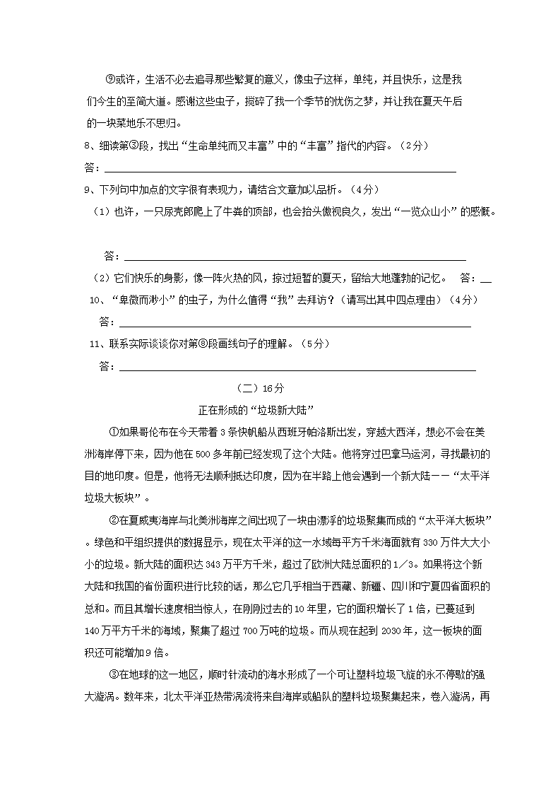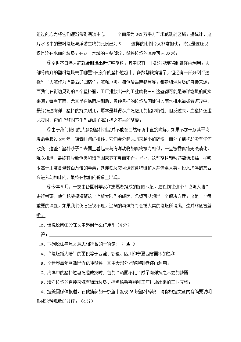 【文档名称】 2010浙江省台州市中考语文真题及答案(Word版).doc