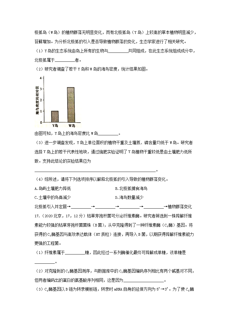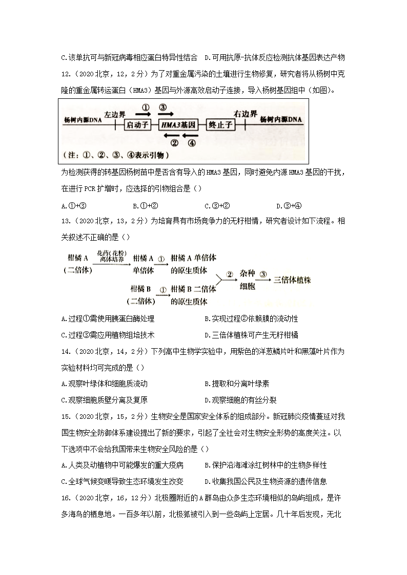 【文档名称】 2020年北京高考生物试题(Word版).doc