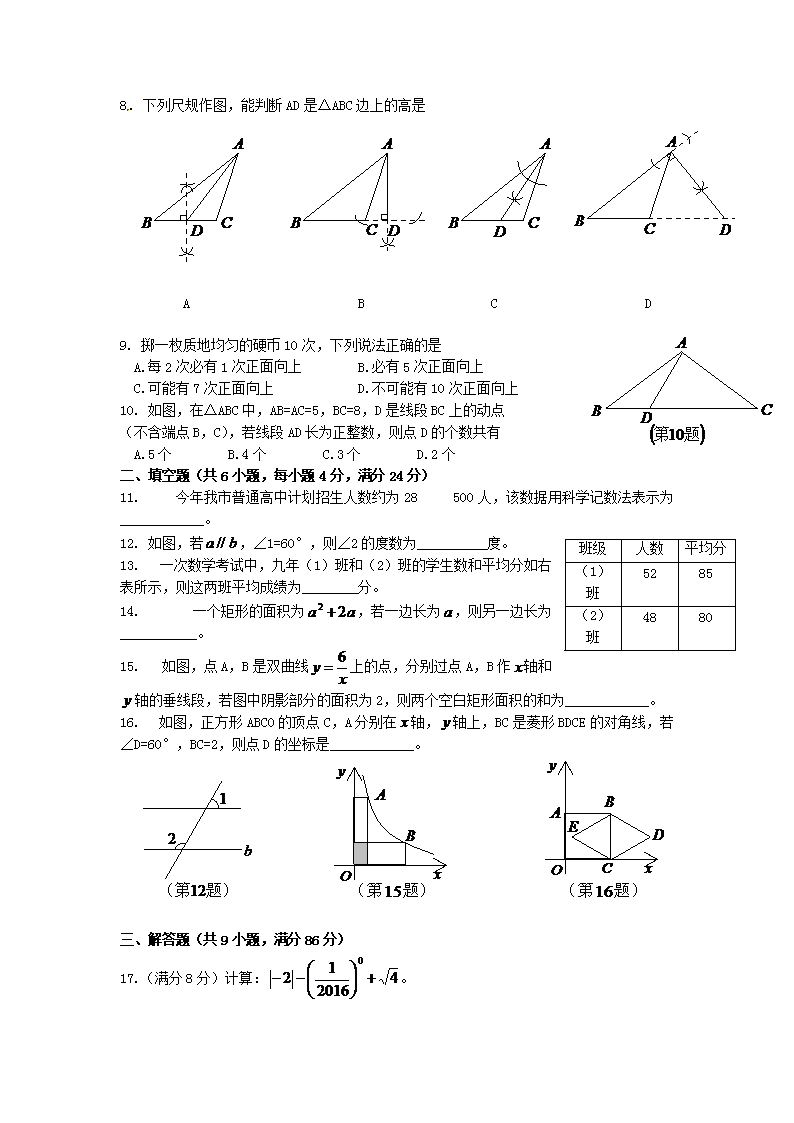 【文档名称】 2016年福建省漳州市中考数学真题及答案(Word版).doc
