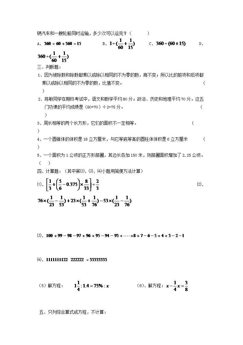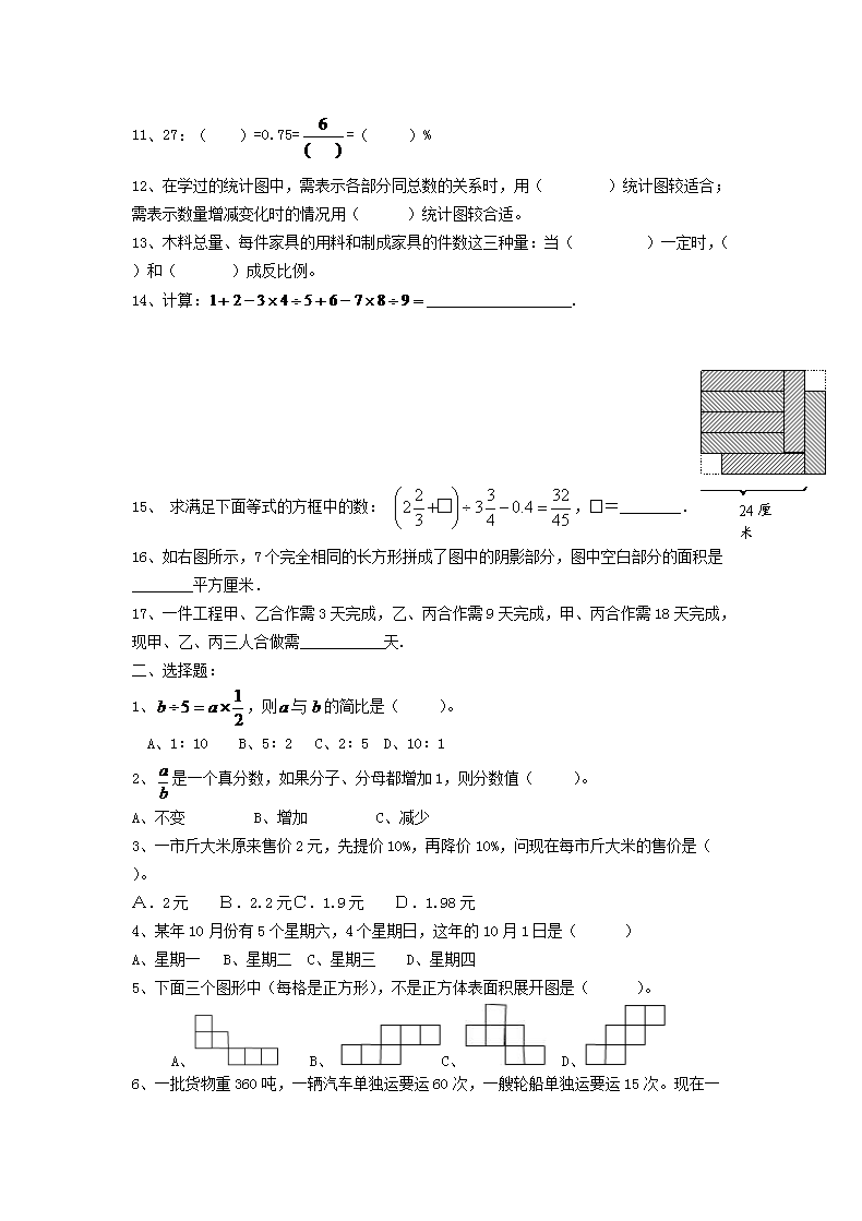 【文档名称】 2016年江苏小升初数学真题及答案(Word版).doc