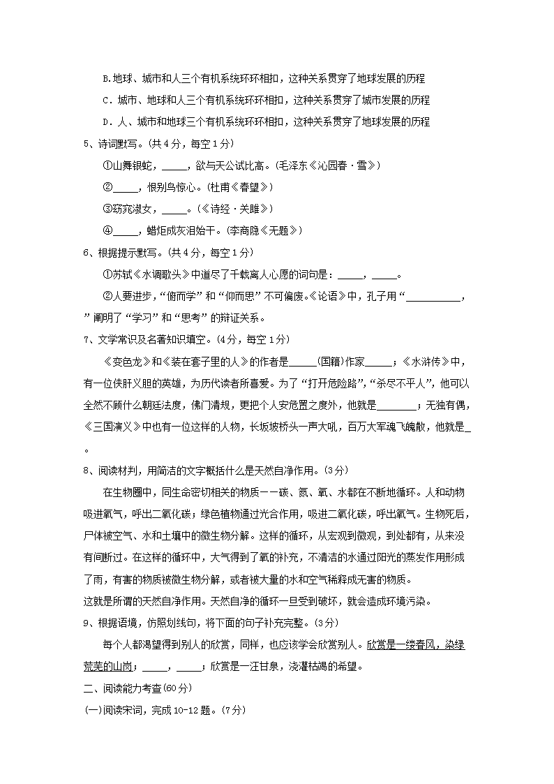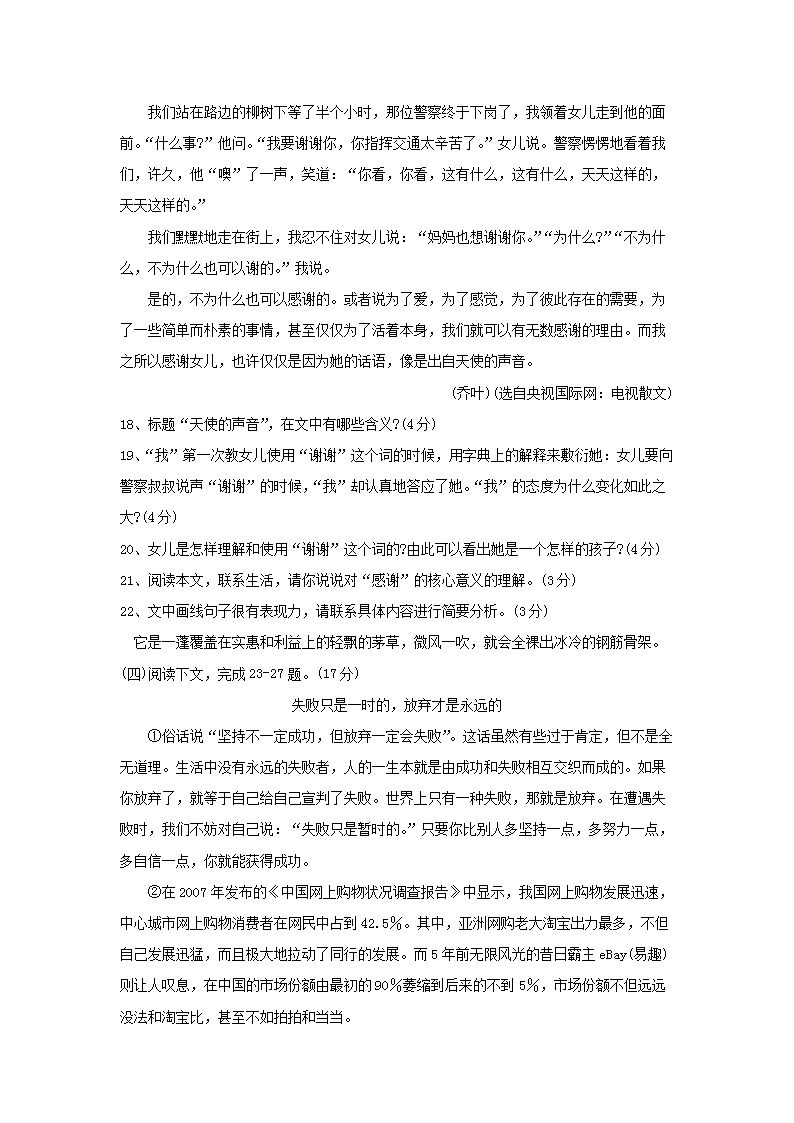 【文档预览】 无忧考网整理发布2014年贵州省安顺市中考语文试题及答案(Word版),前五页预览如下: