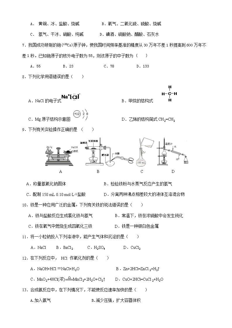 【文档名称】 2018年辽宁普通高中会考化学考试真题(Word版).doc