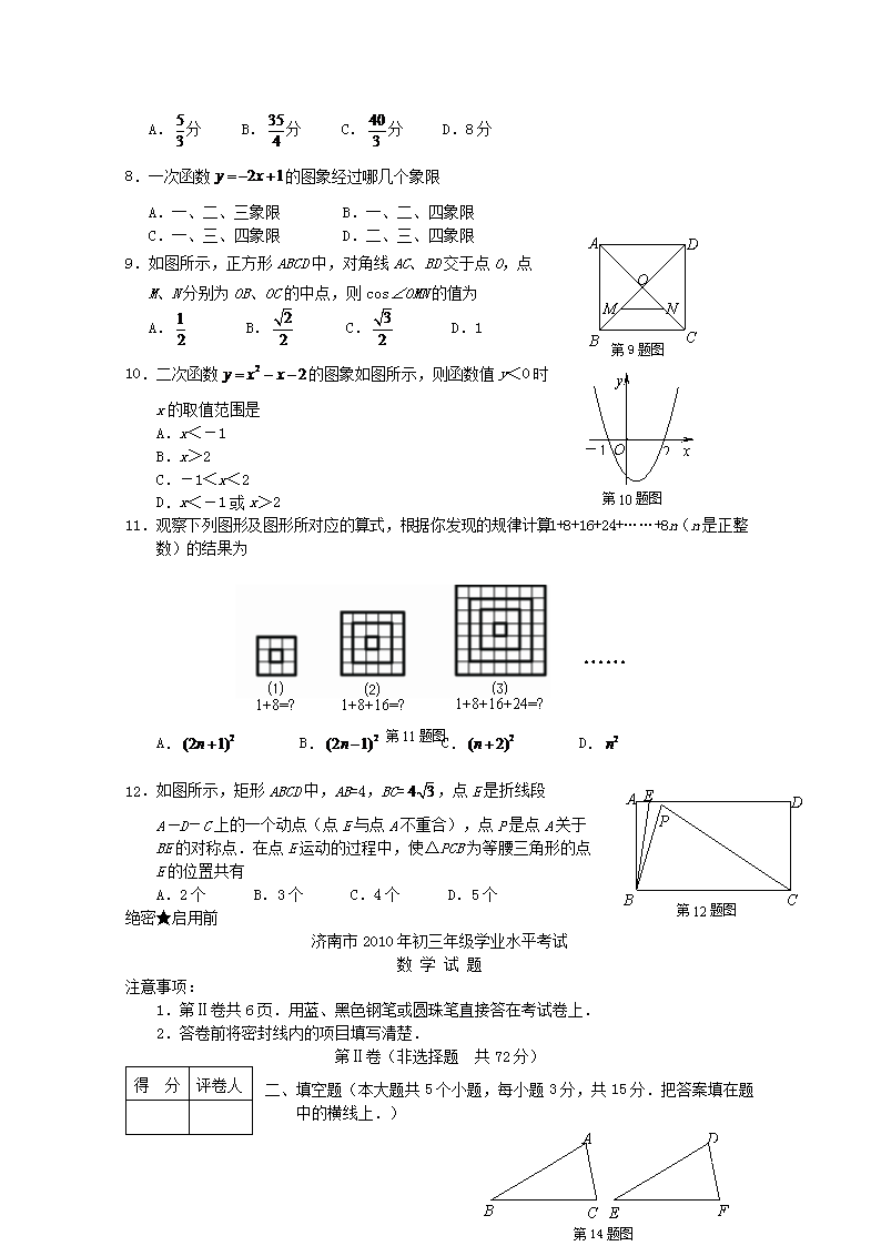 【文档名称】 2010山东省济南市中考数学真题及答案(Word版).doc