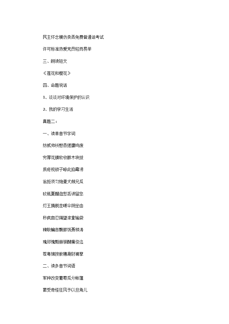 【文档名称】 2017年全国普通话考试真题(Word版).doc